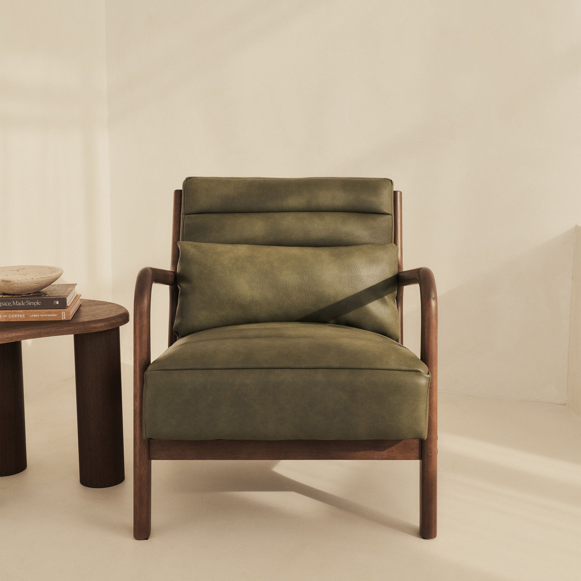Hudson - Leather Accent Chair Olive & Dark Wood