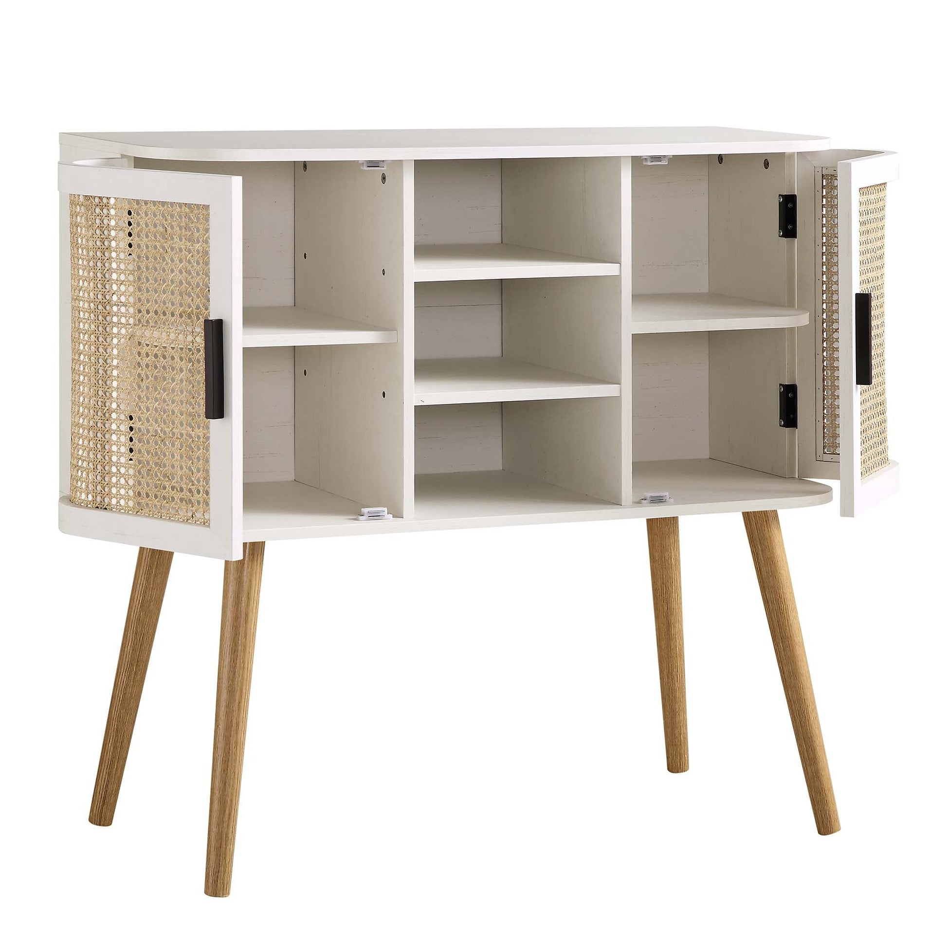 Izzy Curved Rattan 2-Door Buffet Sideboard, White