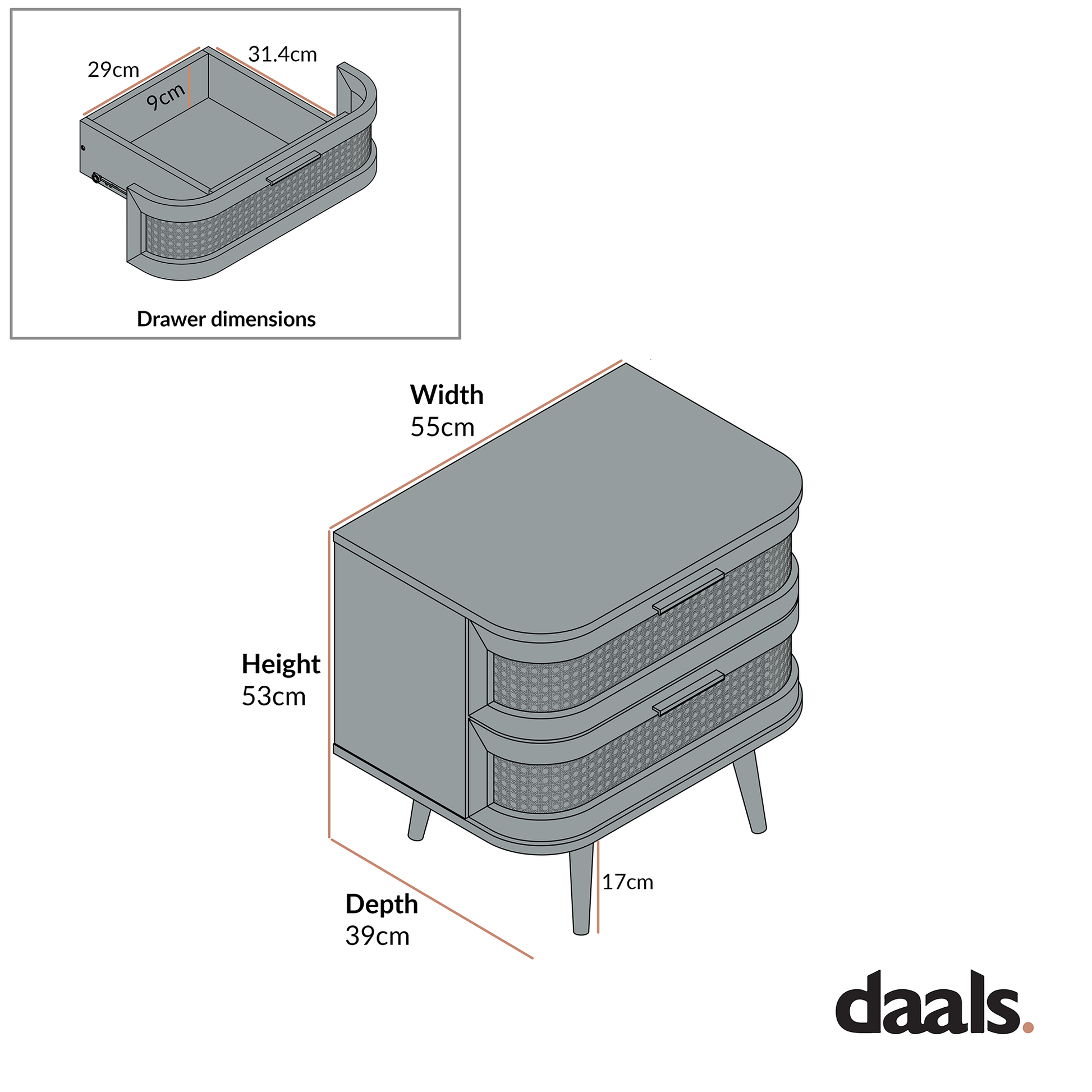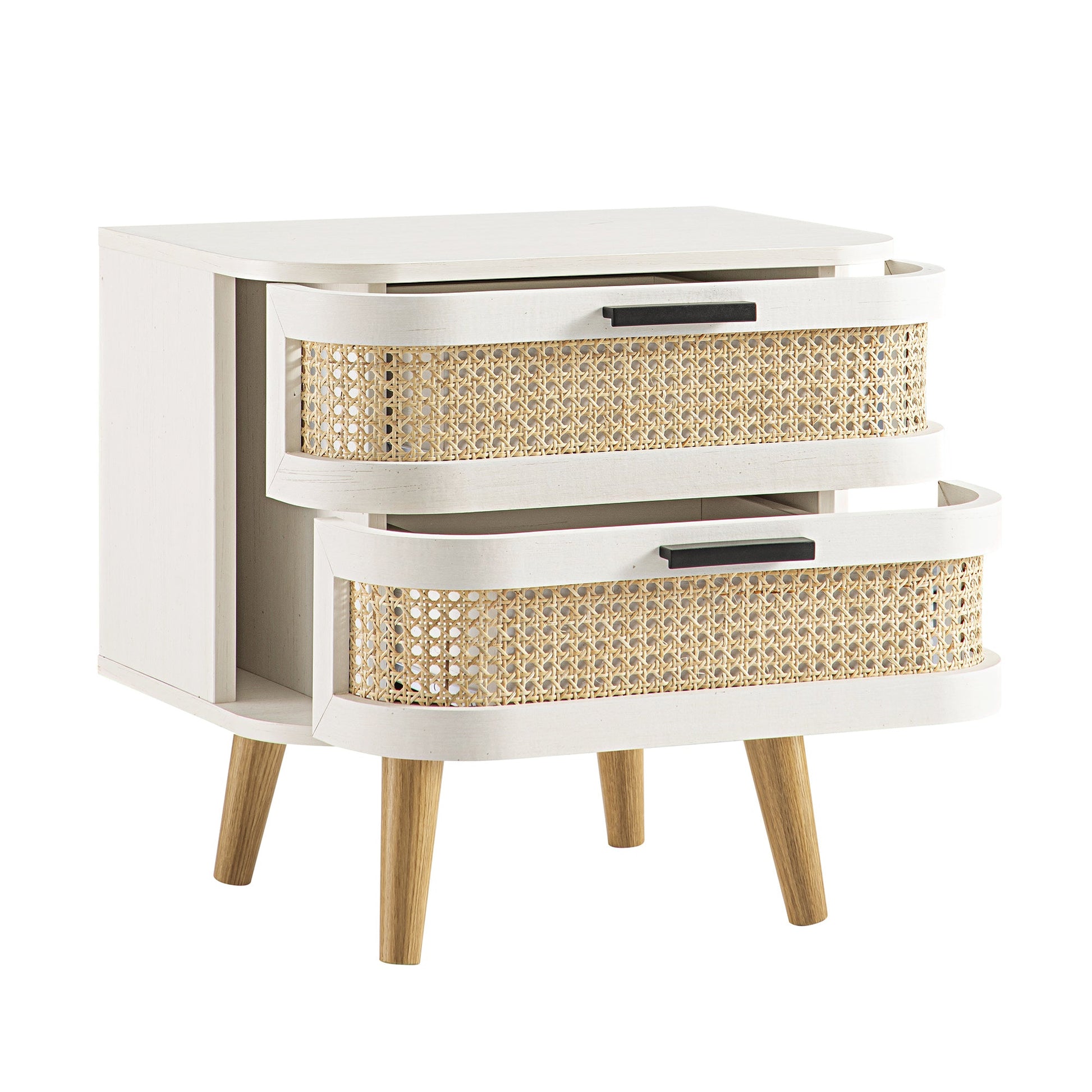 Izzy Curved Rattan 2-Drawer Bedside Table, White