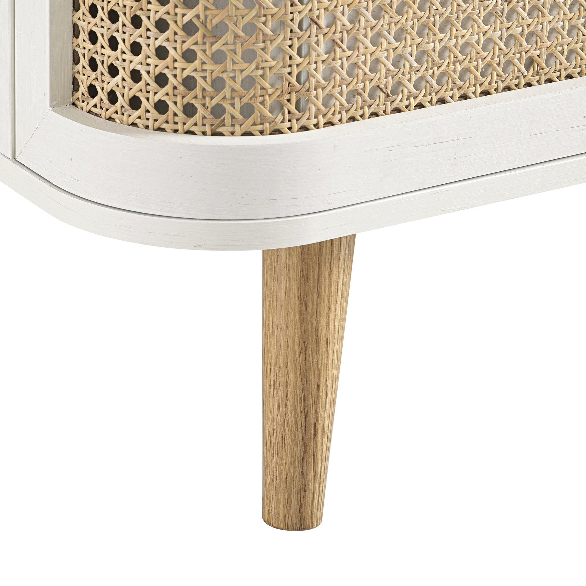 - Breezy and effortlessly elegant, the Izzy Curved Rattan Bedside Table in White is the perfect companion for a calming, curated bedroom.