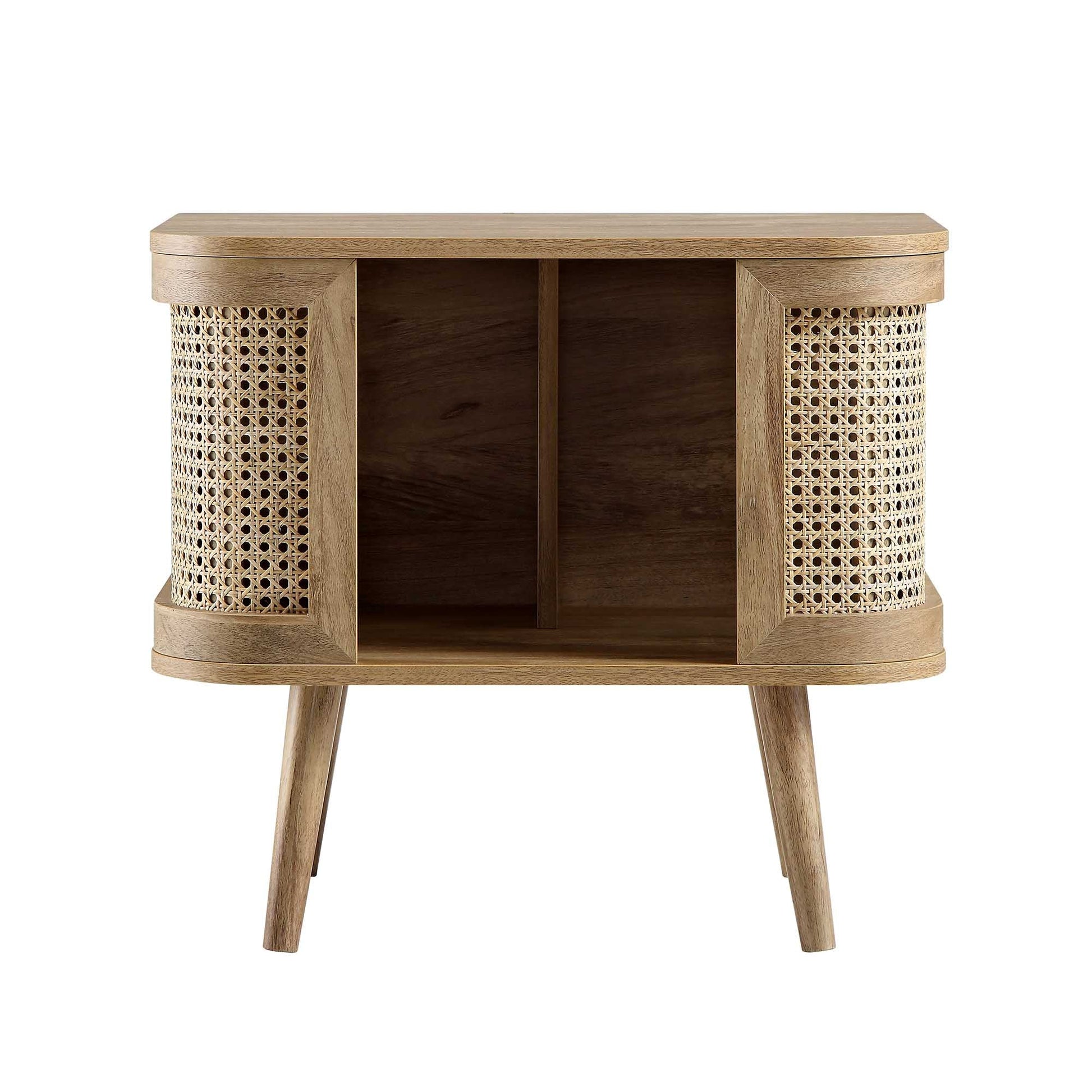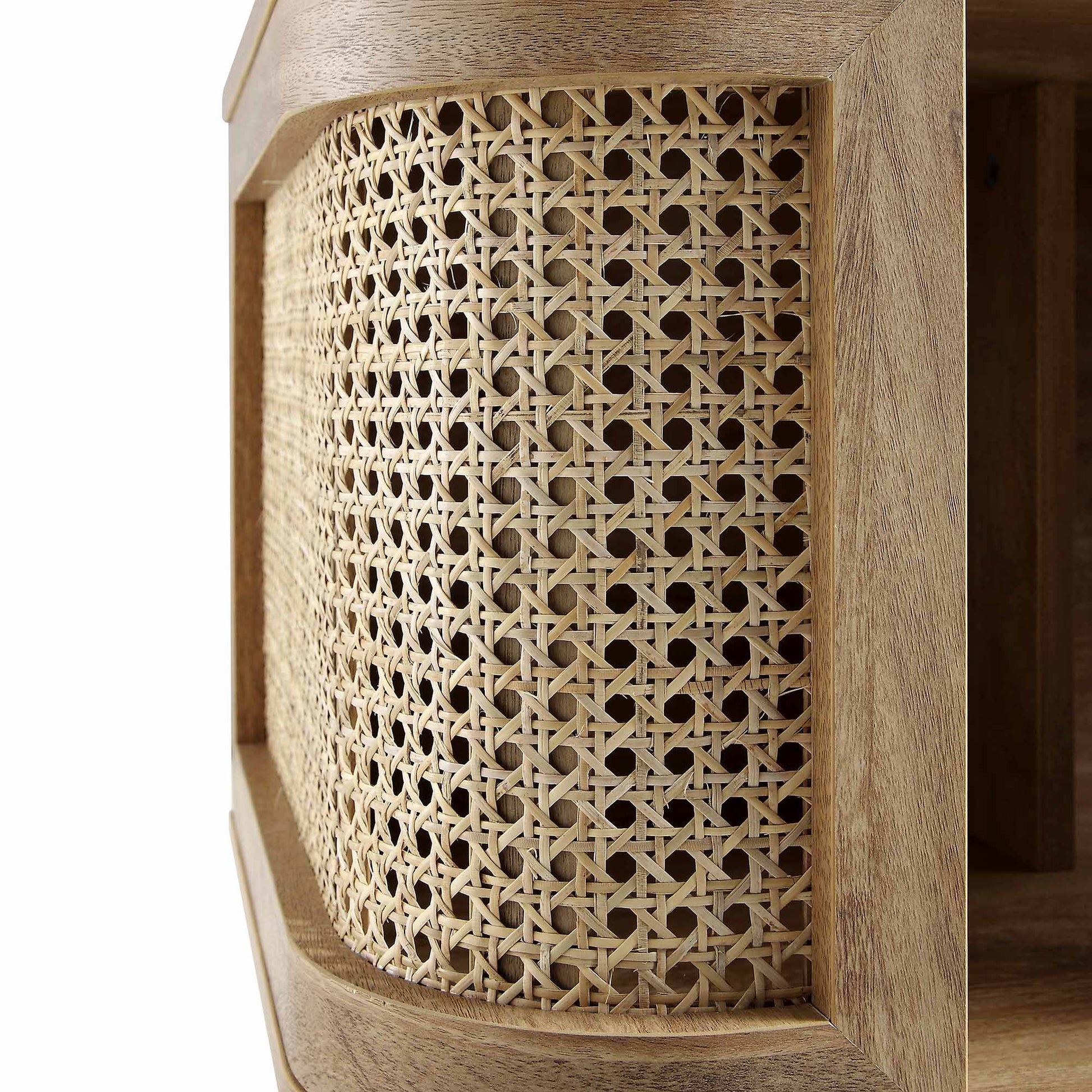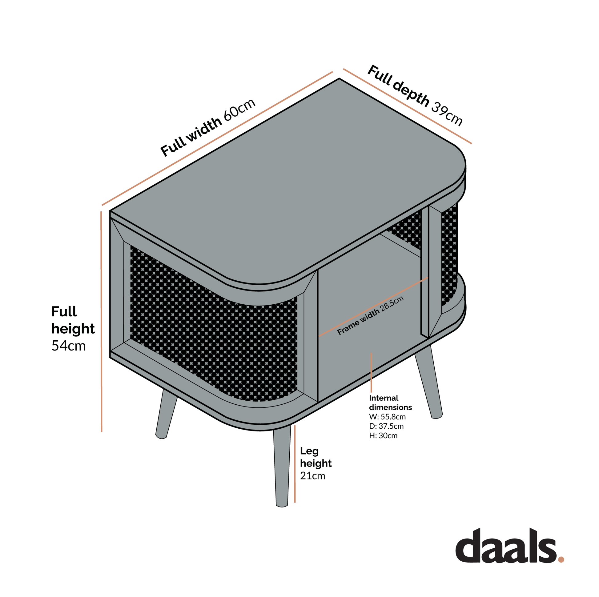 - Complete the look: Pictured with our Izzy Curved Rattan Bedside Table is our Constance Winged Headboard Ottoman Storage Bed in Beige Linen