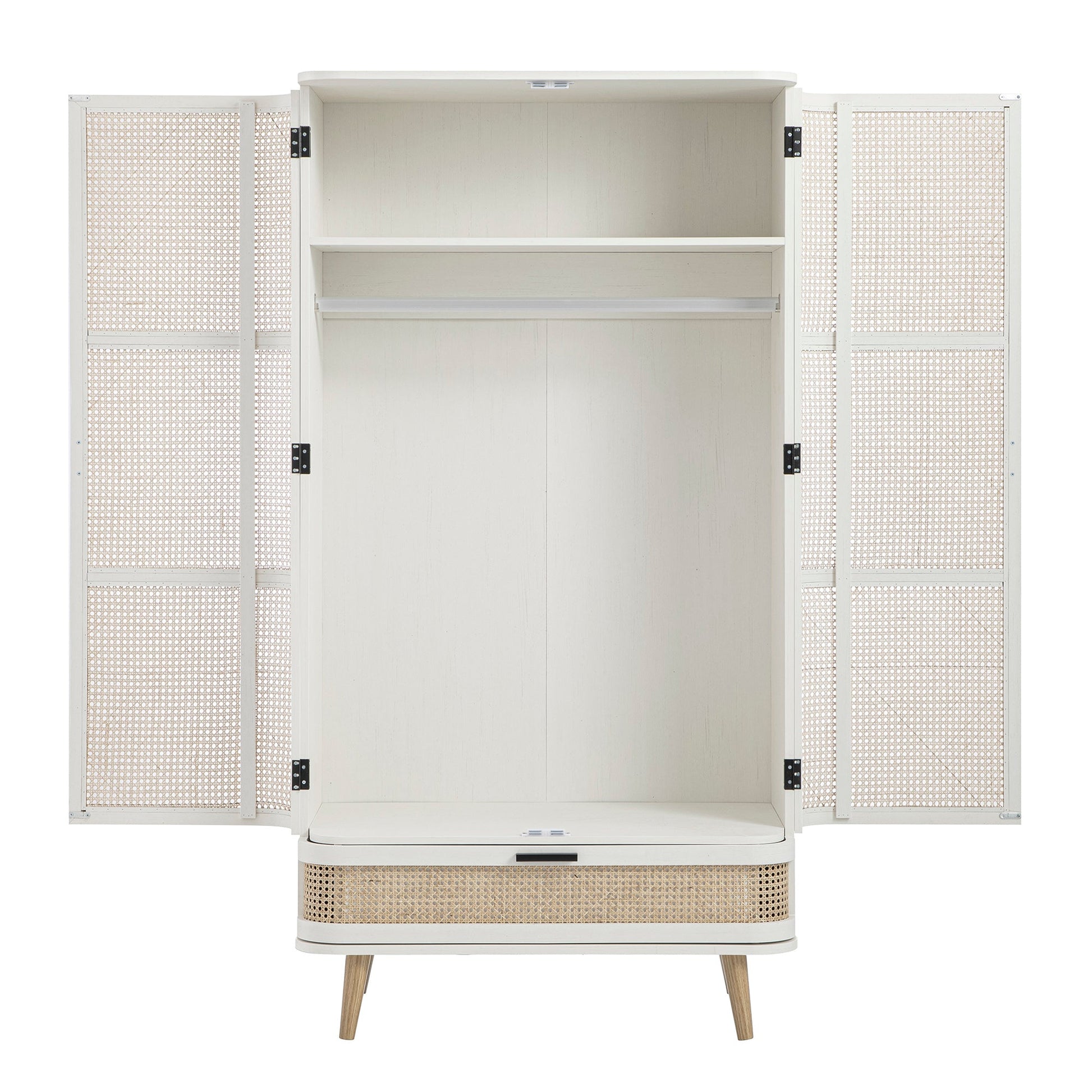 - Complete the look: Pictured with the Izzy White Curved Rattan Double Wardrobe is our Evie Hand Braided Jute Scallop Runner, Izzy White Curved Rattan 2-Drawer Bedside Table and Maison Neutral Rosanna Cushion.