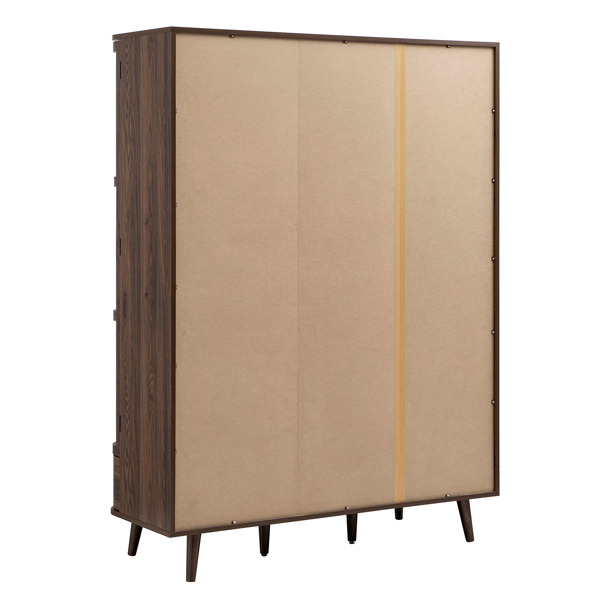 - With its rich walnut colour finish and natural rattan panels, this wardrobe brings warmth, texture, and a relaxed sophistication to any bedroom.