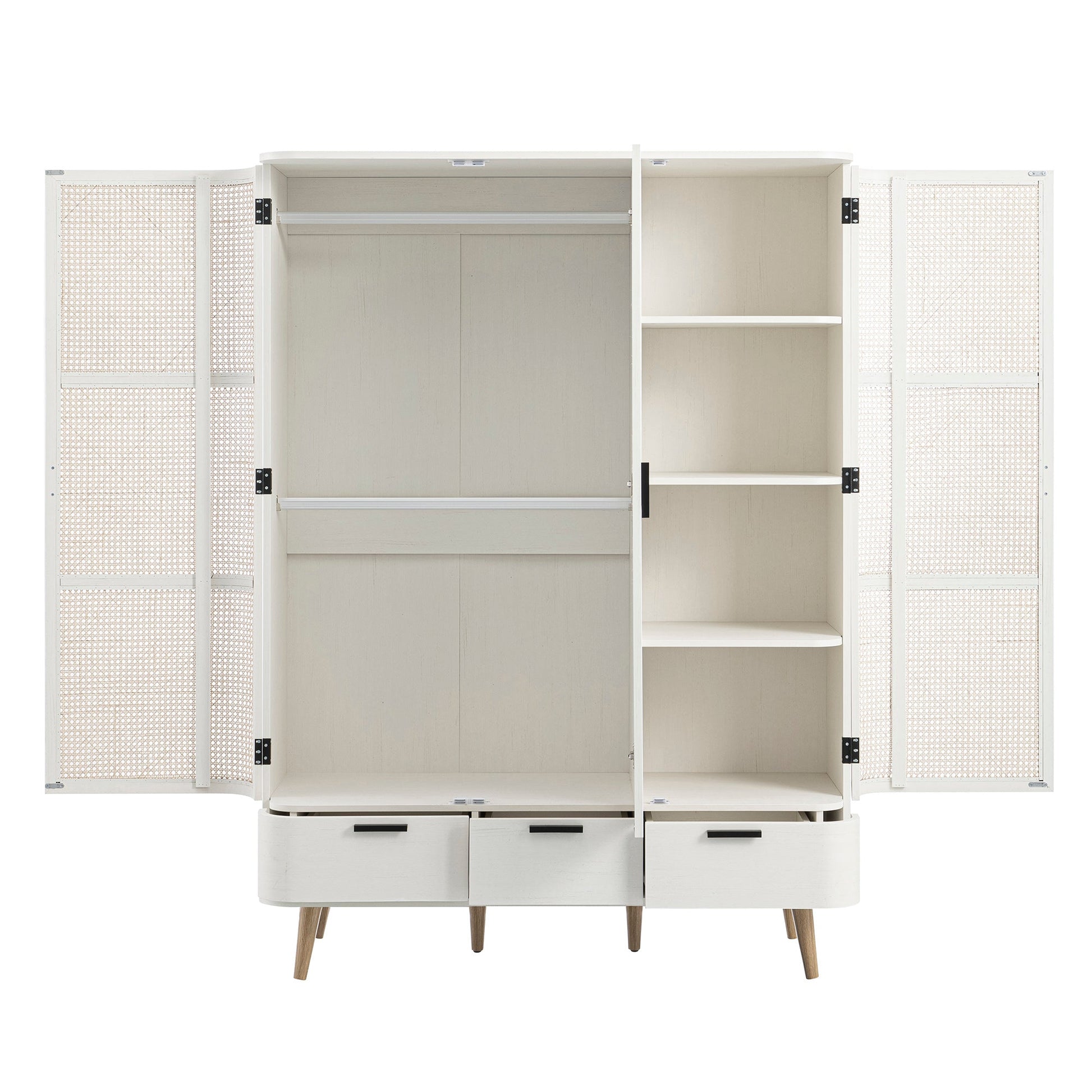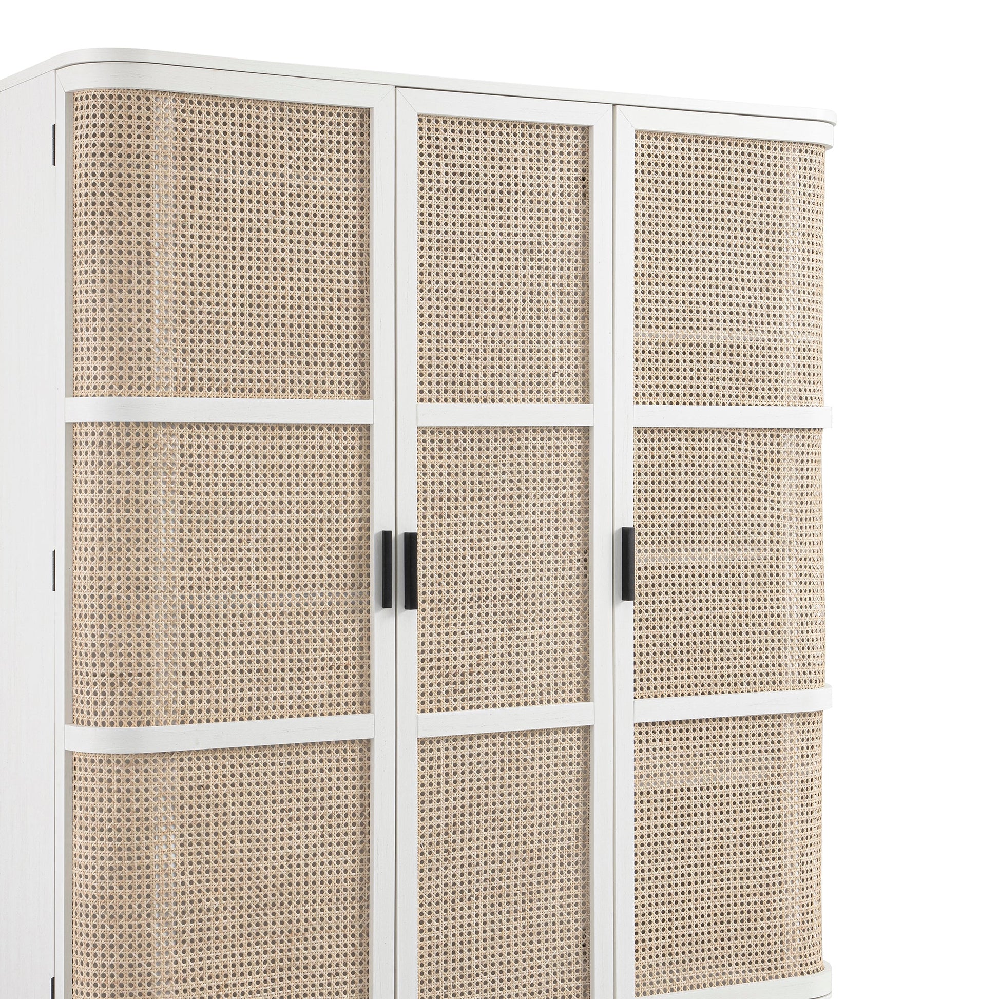 - Light, airy, and full of character, the Izzy Curved Rattan Triple Wardrobe in White brings relaxed sophistication to your bedroom.