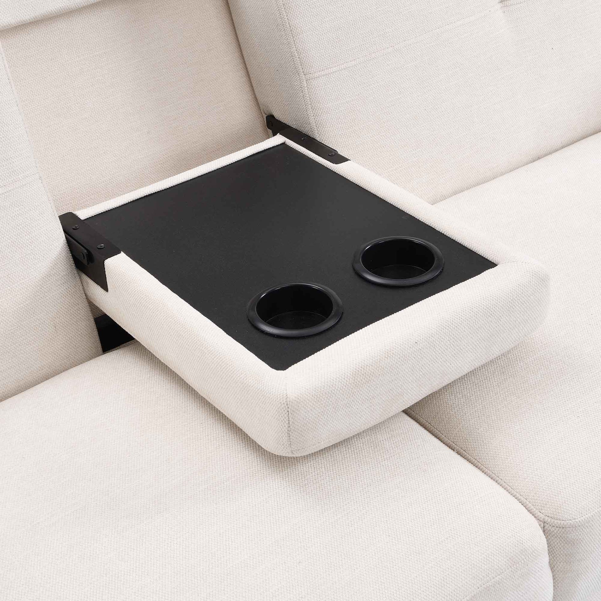 - The hidden storage compartments underneath seat are ideal for homes with limited spaces. The cup holder can be pulled down and pushed back into backrest.