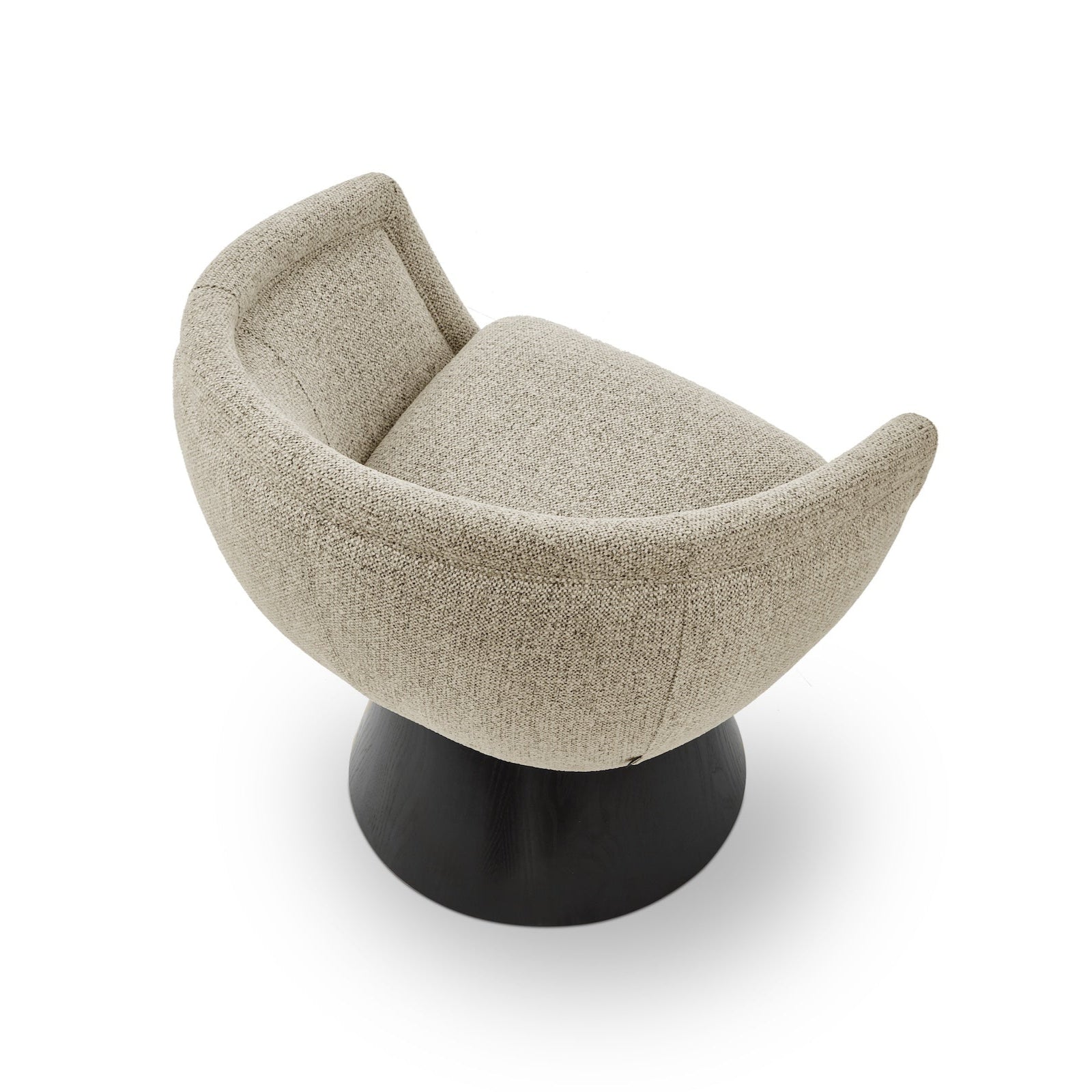 The Harriet Occasional Chair in Colmer Silver Grain instantly captivates with its unique textured fabric, crafted from recycled materials in a striking silver-grey hue. Its standout feature is the smooth seat and elegant curved backrest, offering both style and comfort in equal measure. The conical base, crafted in matt black ash veneer, adds a modern and unexpected twist to its design.