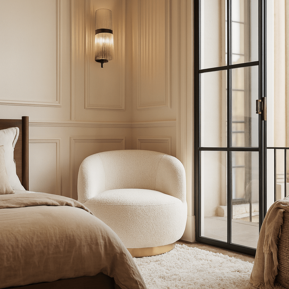 Created by luxury designer Liang & Eimil, this boucle chair is sophisticated and, measuring in at 84cm wide and 88cm deep, combined with its 360 degree swivel base, is designed to fit into the cosiest of spaces. However, with its bold, brushed brass base, it is a striking statement piece, suitable for any size or style of room.