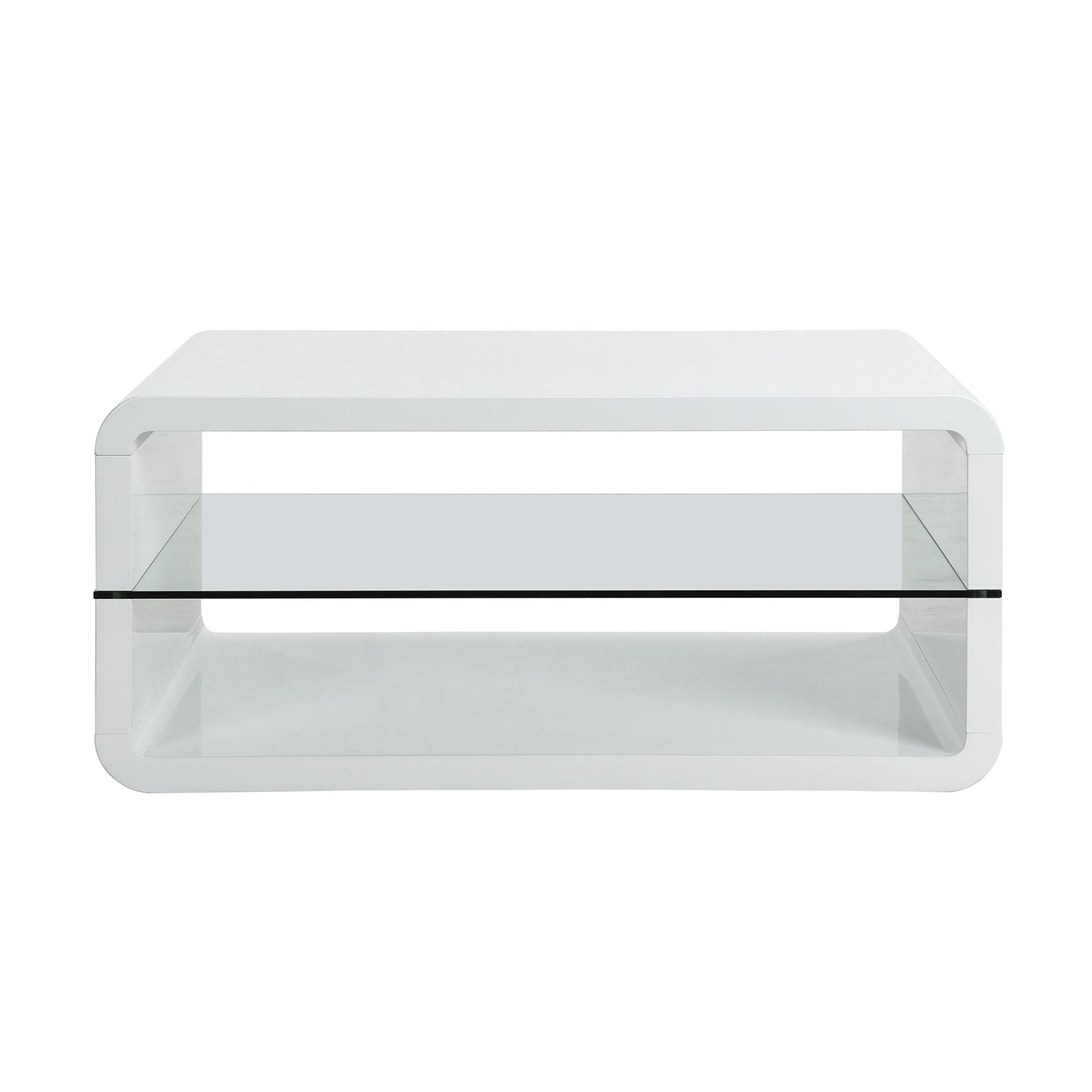 - Our Lucent coffee table gives your lounge/ living room an airy and soft feel thanks to its white high gloss finish, rounded corners and clear glass shelf.
