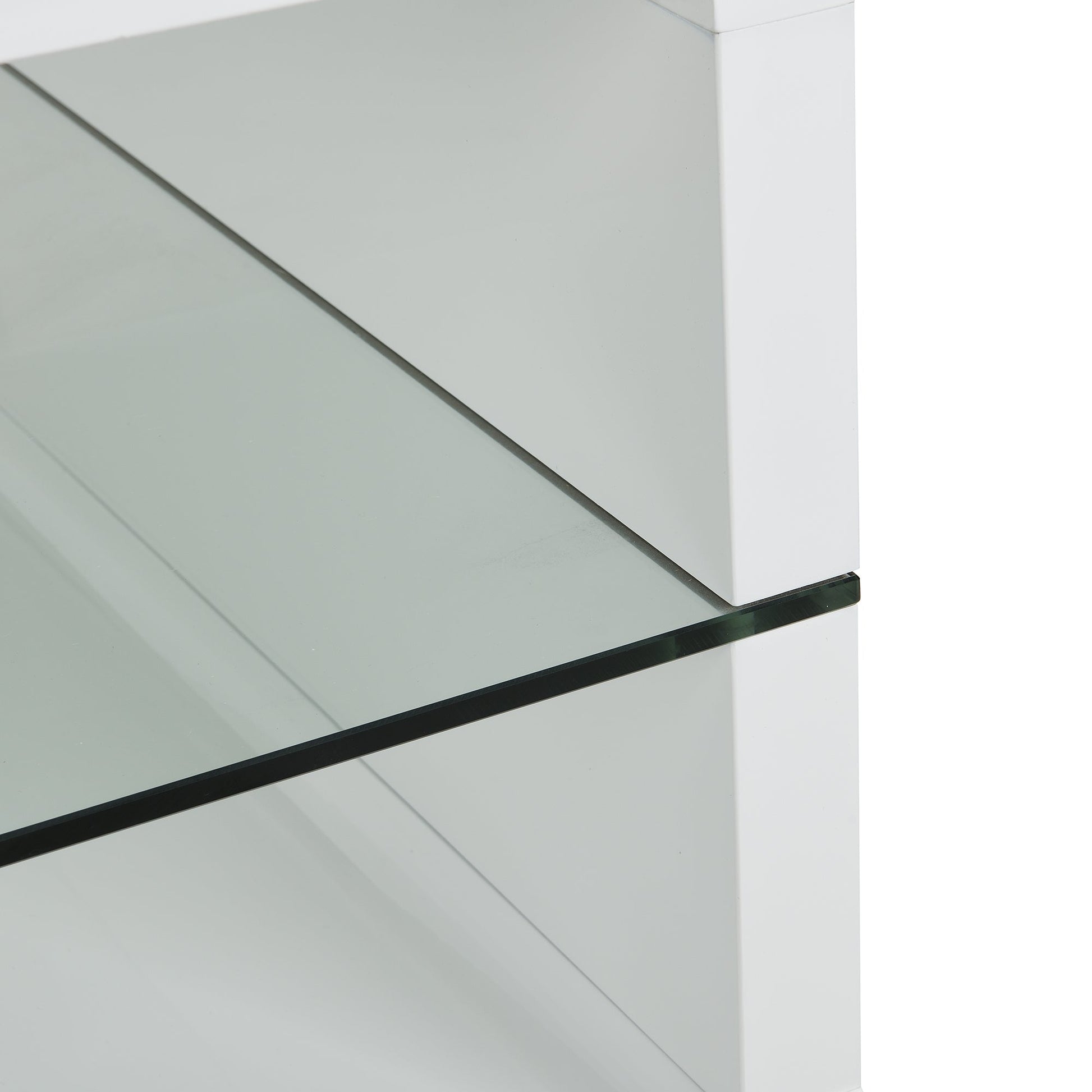 - Material: MDF with high gloss PU painted finish, 8mm tempered glass shelf