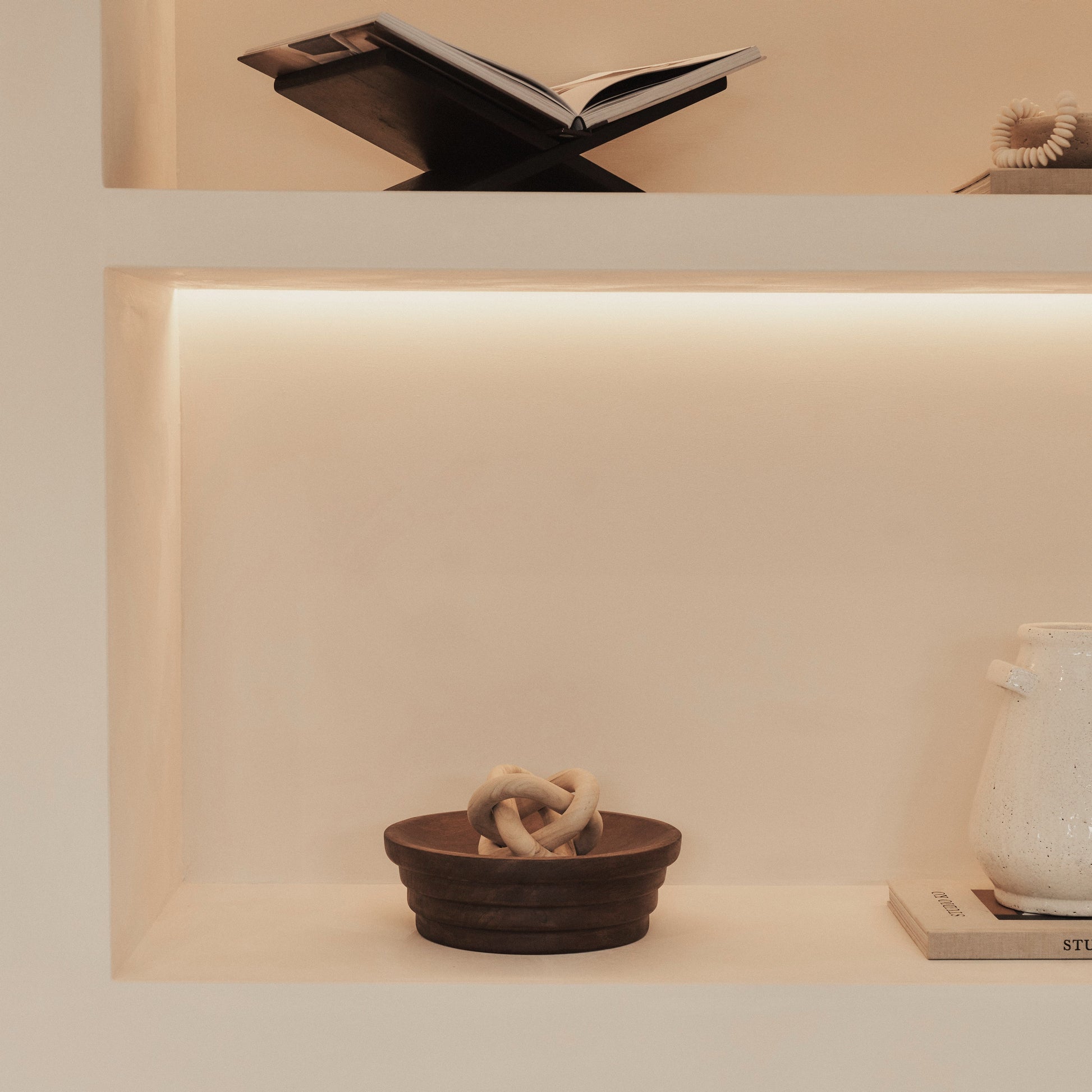 The Luciana Bowl features a sophisticated ribbed design with a rich dark wood finish, making it an elegant addition to your coffee table or sideboard. Its bold tones complement a variety of interiors, offering both decorative charm and texture to enhance your living space.