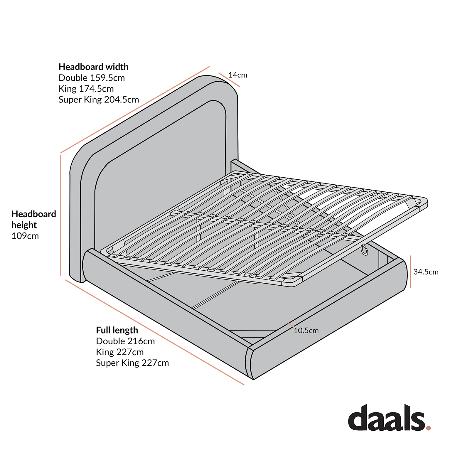 - 6FT Super King: W 204.5 x D 227.0 x H 109.0cm