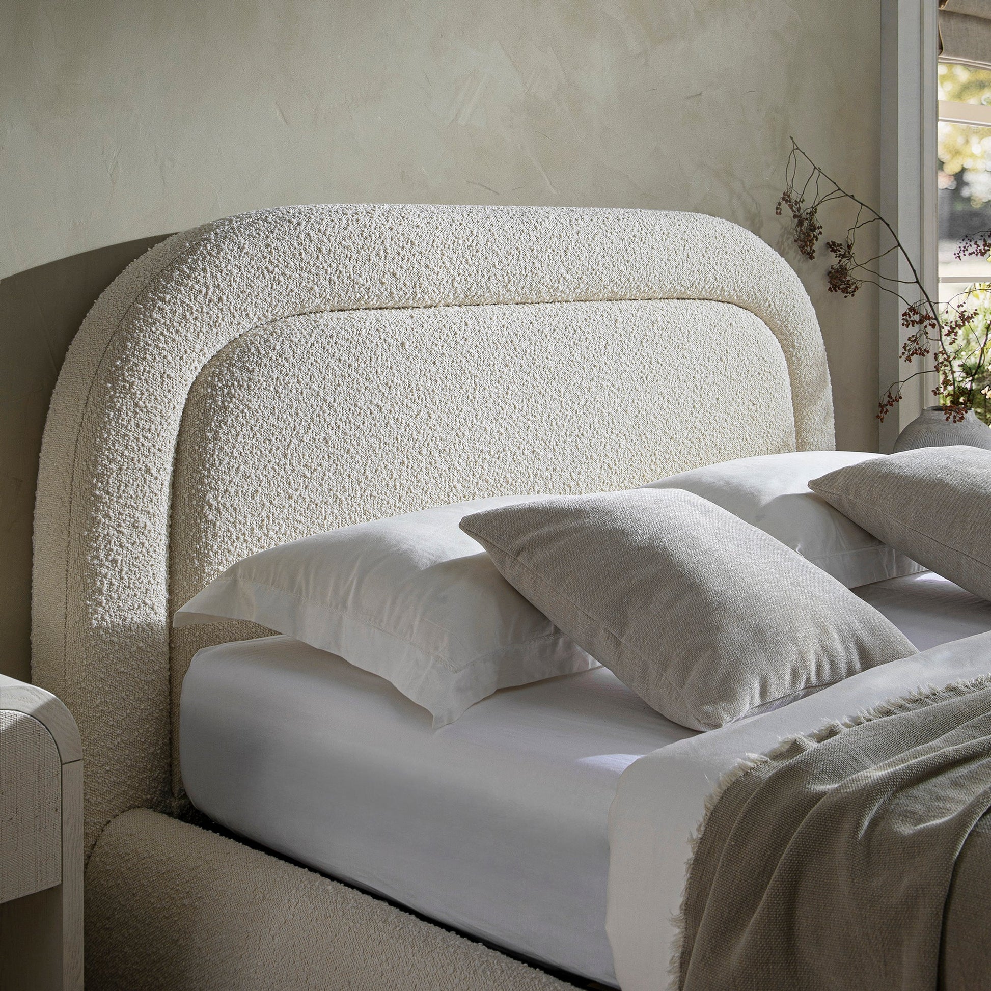 - Complete the look: Pictured with the Luella Ecru Boucle Upholstered Storage Bed is our Maude Washed White Ash Raffia Bedside Table, Atlan Cream & Black Handwoven Wool Rug and Chinnor Beige Boucle Weathered Oak Accent Chair.