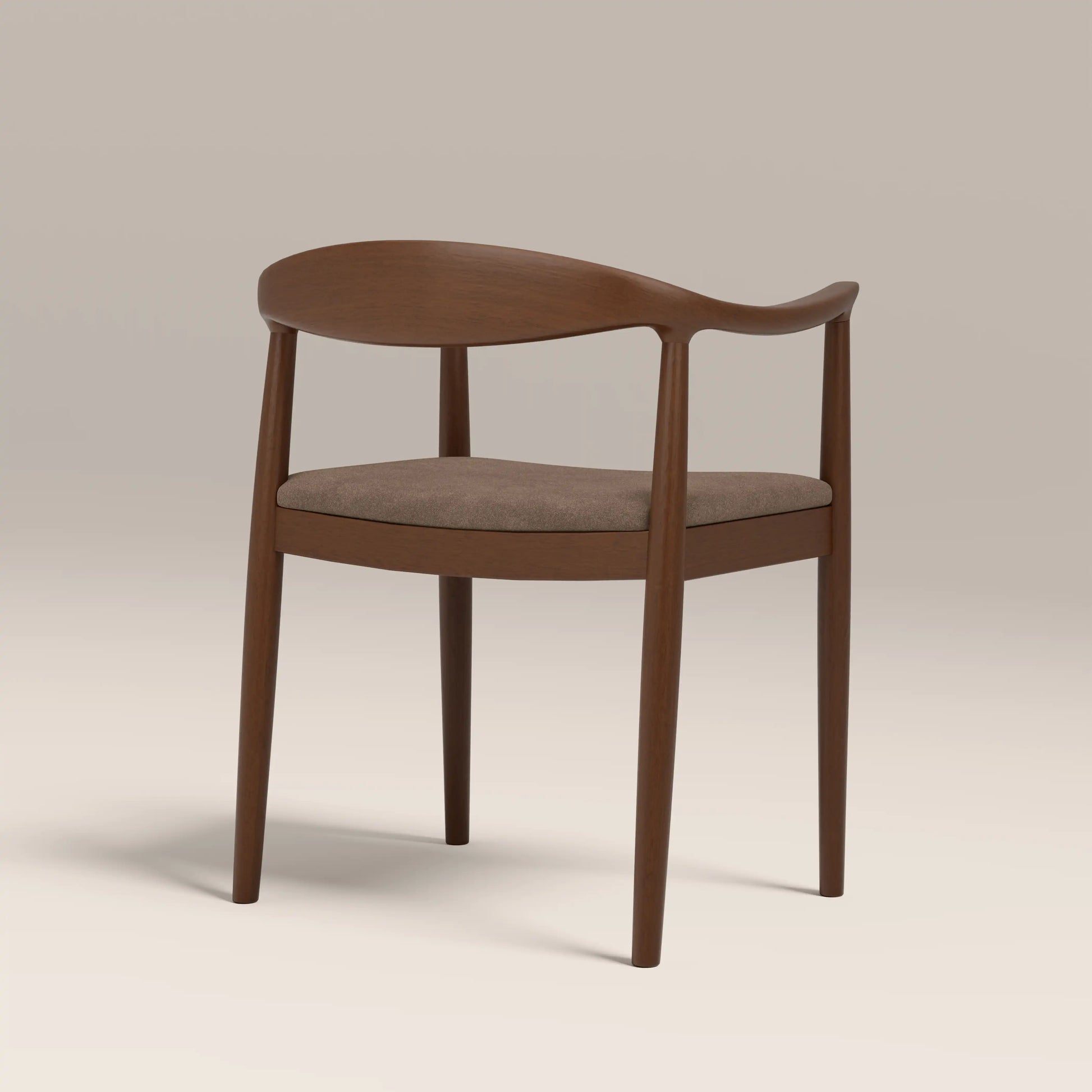 Luma Wooden Carver Dining Chair | Truffle Brown Sustainable Mohair Velvet & Walnut