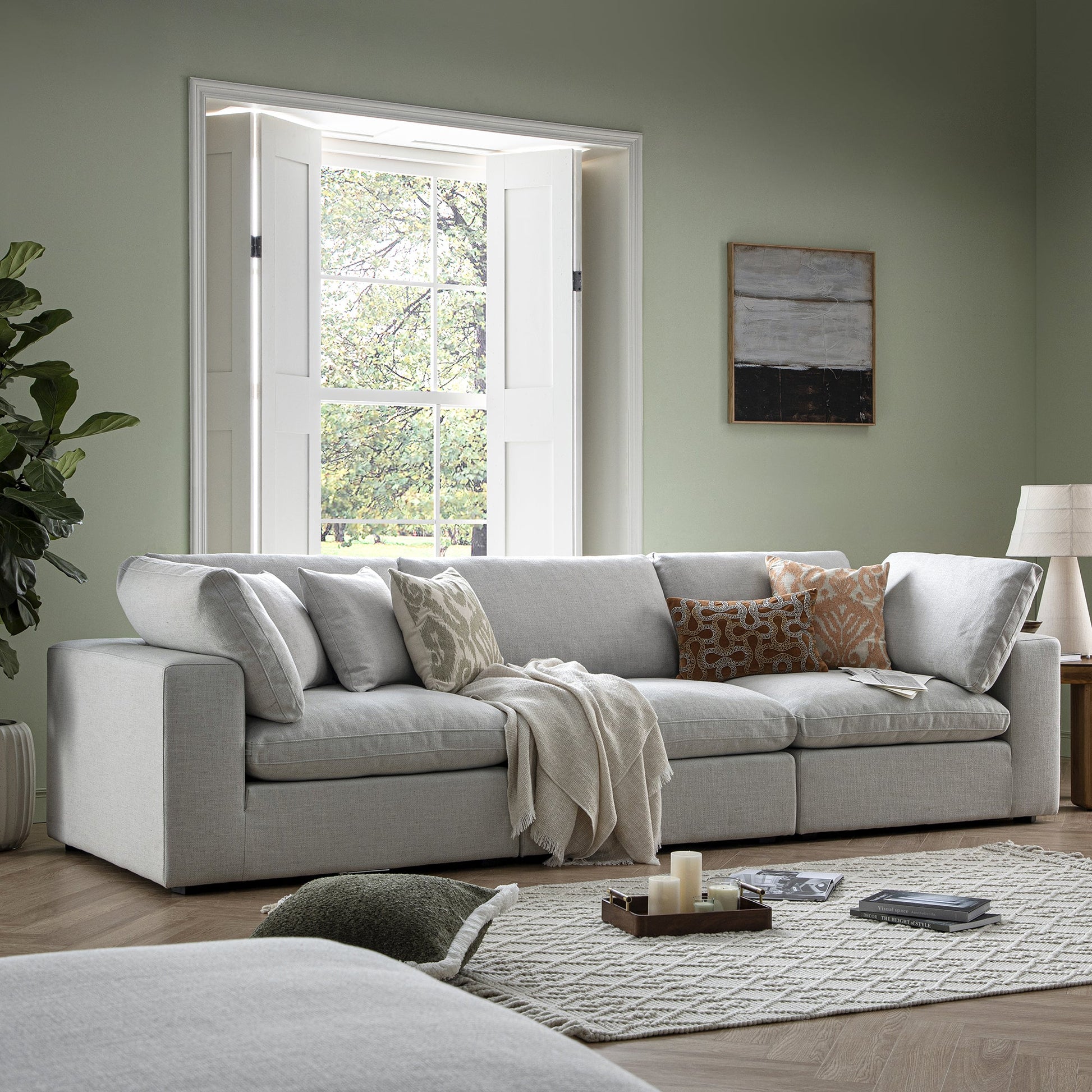- The extra deep-seated sofa modules offer sink-in comfort with all cushions filled with soft goose feather and polyfibre wrapped around a premium foam core.