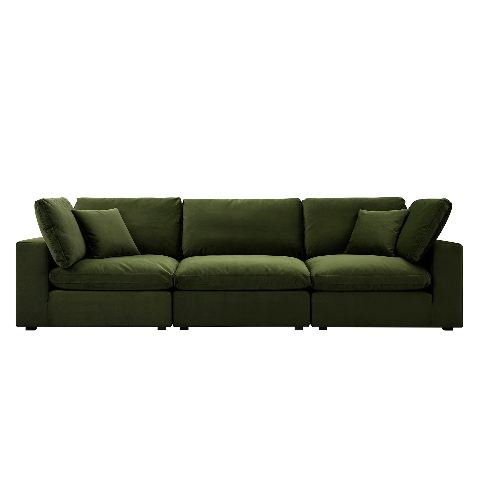 Lutyens Moss Green Velvet Modular Sofa, 3-Piece