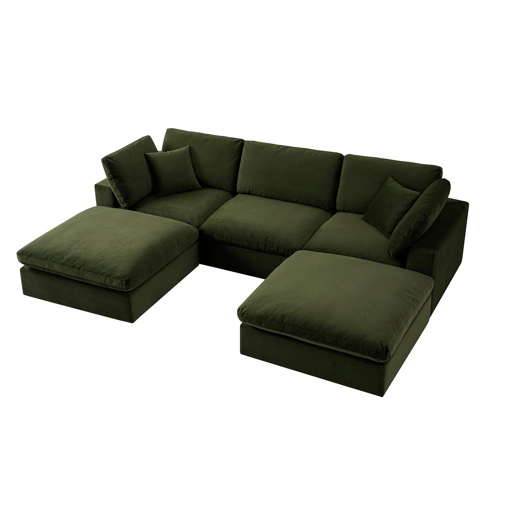 Lutyens Moss Green Velvet Modular Sofa, 5-Piece U-Shape Set
