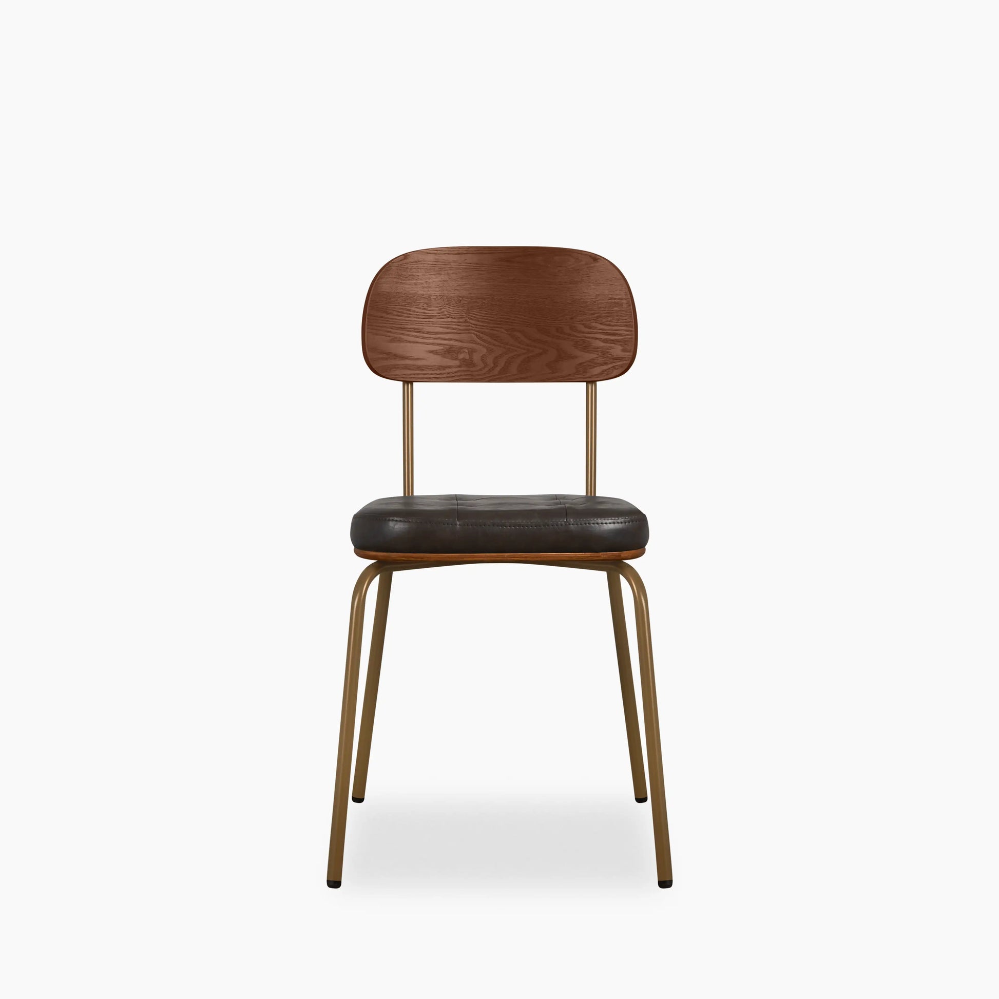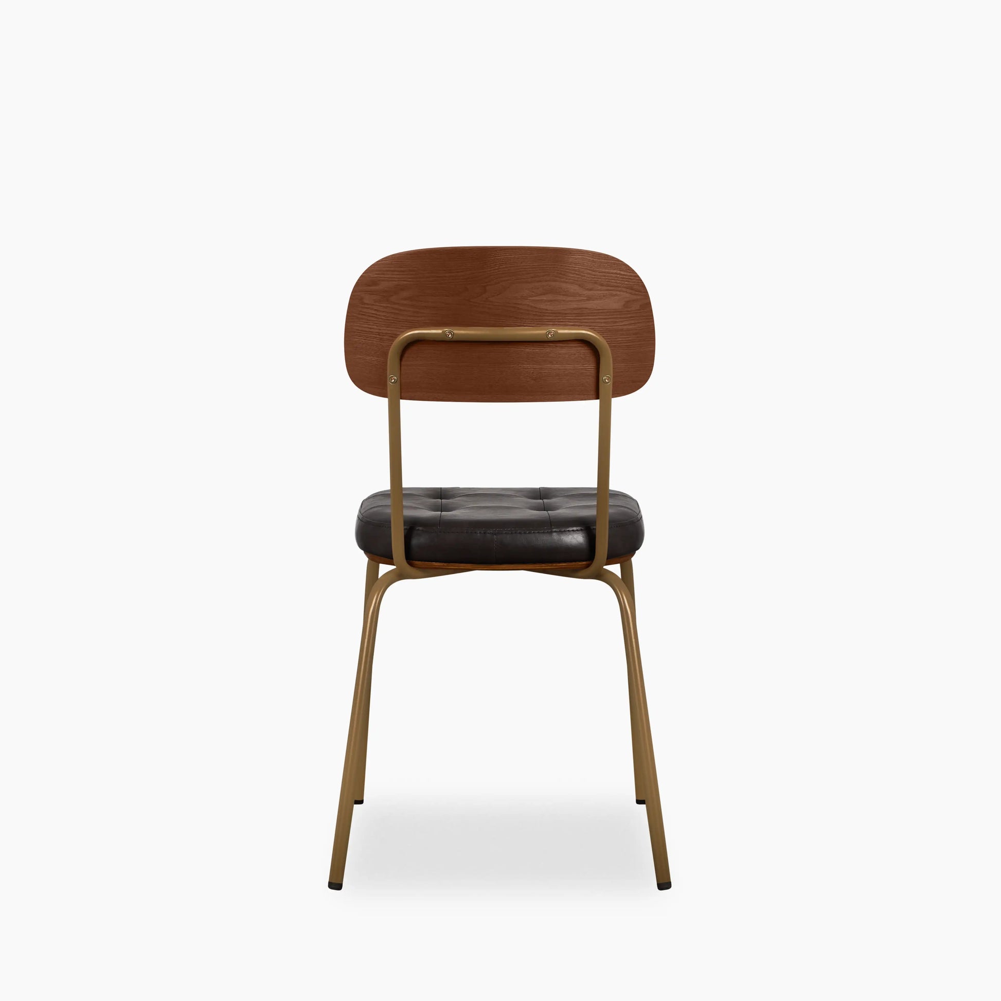 Maddox Stackable Dining Chair | Vintage Black Faux Leather & Brass