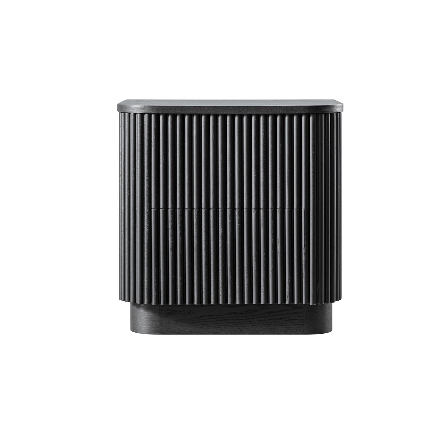 - Sculptural, moody, and quietly dramatic, our Maru 2-Drawer Bedside Table in Black adds a striking yet balanced presence to your bedroom.