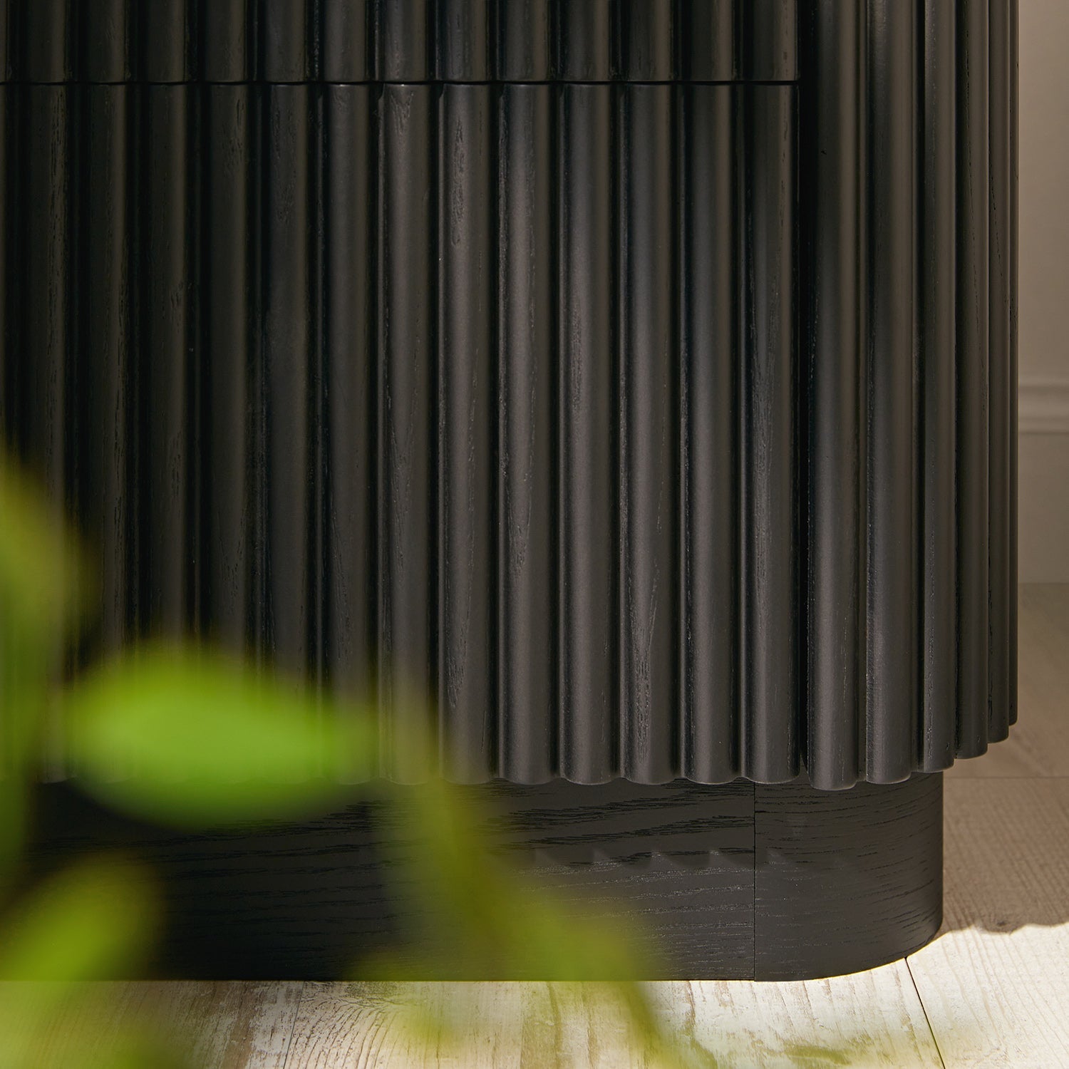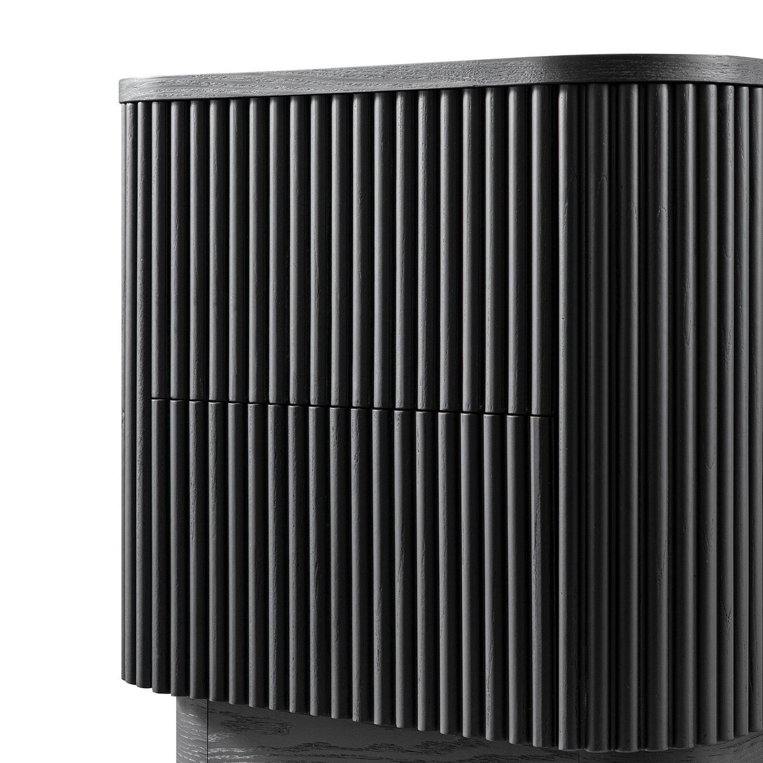 - The vertical fluting wraps around its softly curved form, creating a rhythm of shadow and light that plays beautifully against the ebony finish.
