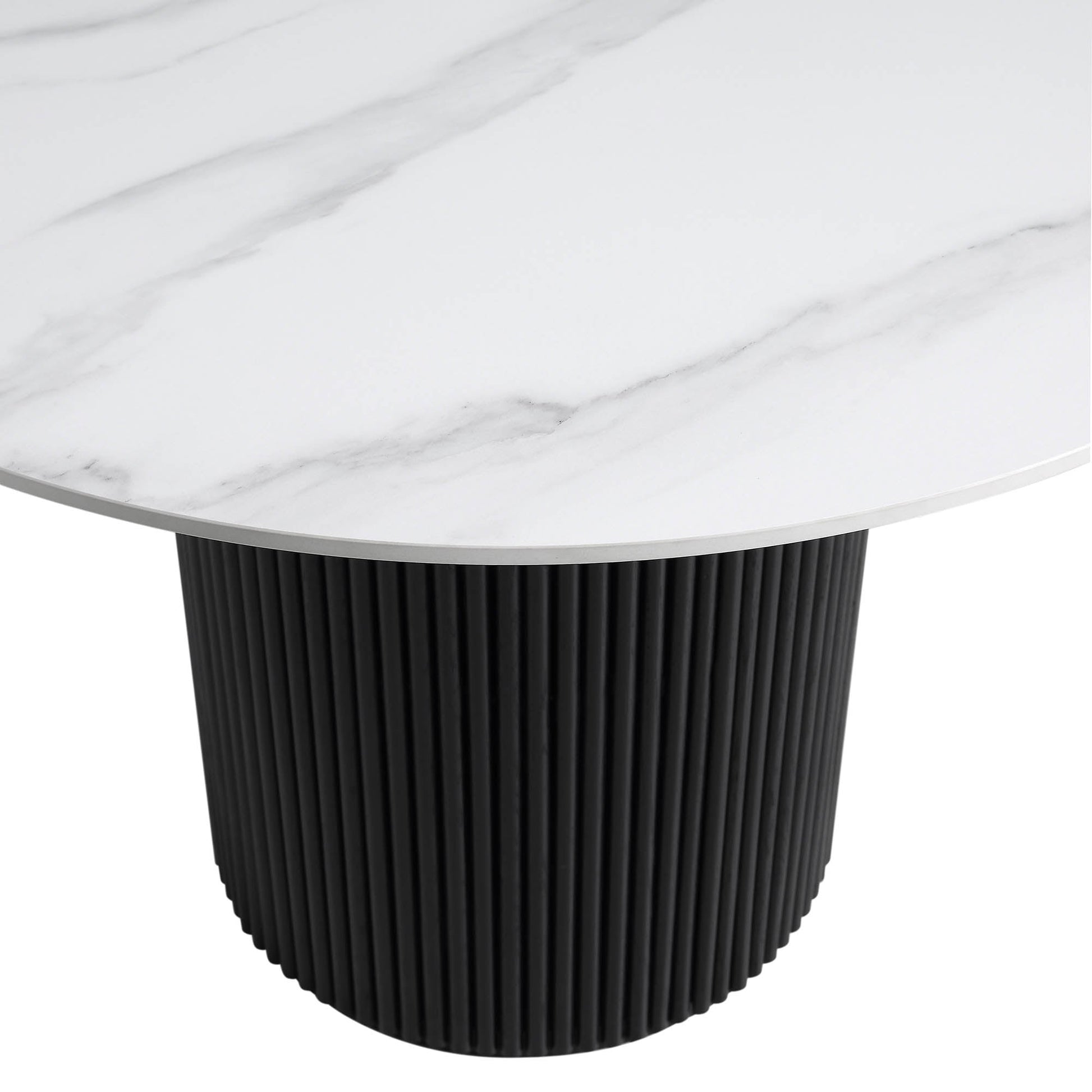 Maru Ceramic Top Black Pedestal Round Dining Table