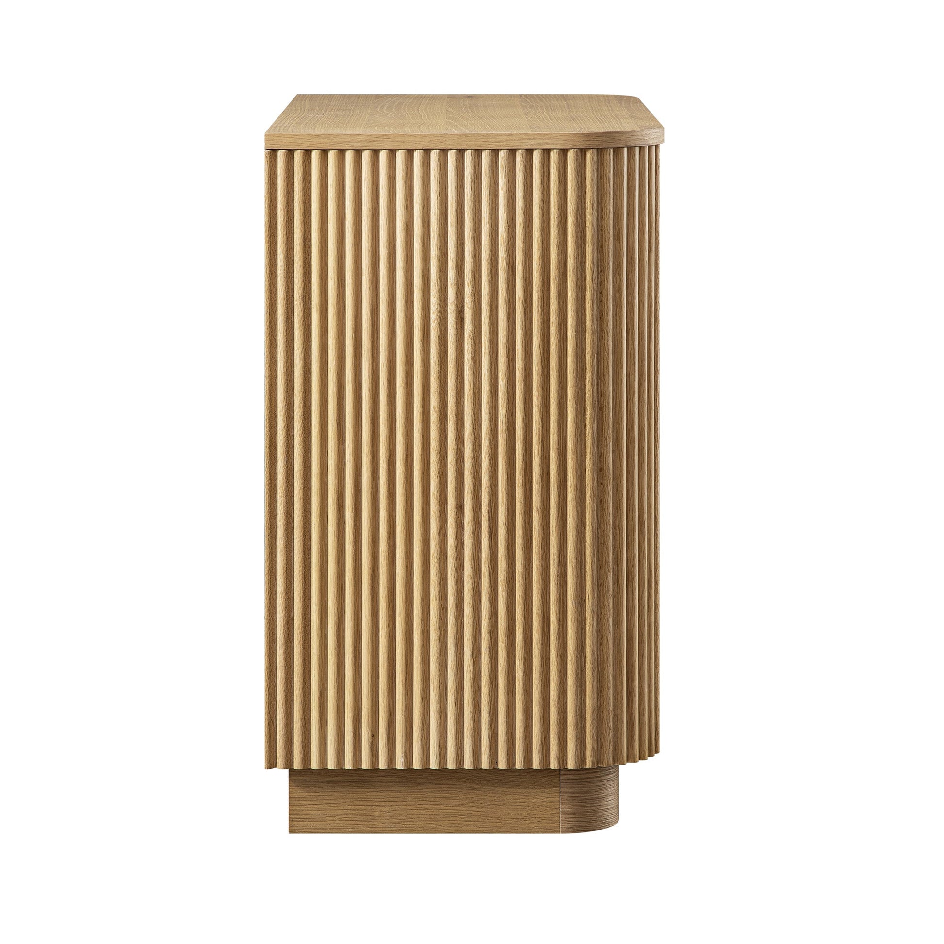 - The chest is designed with all solid oak flutes on 3 vertical surfaces, including the front and both sides, for a well-rounded look.