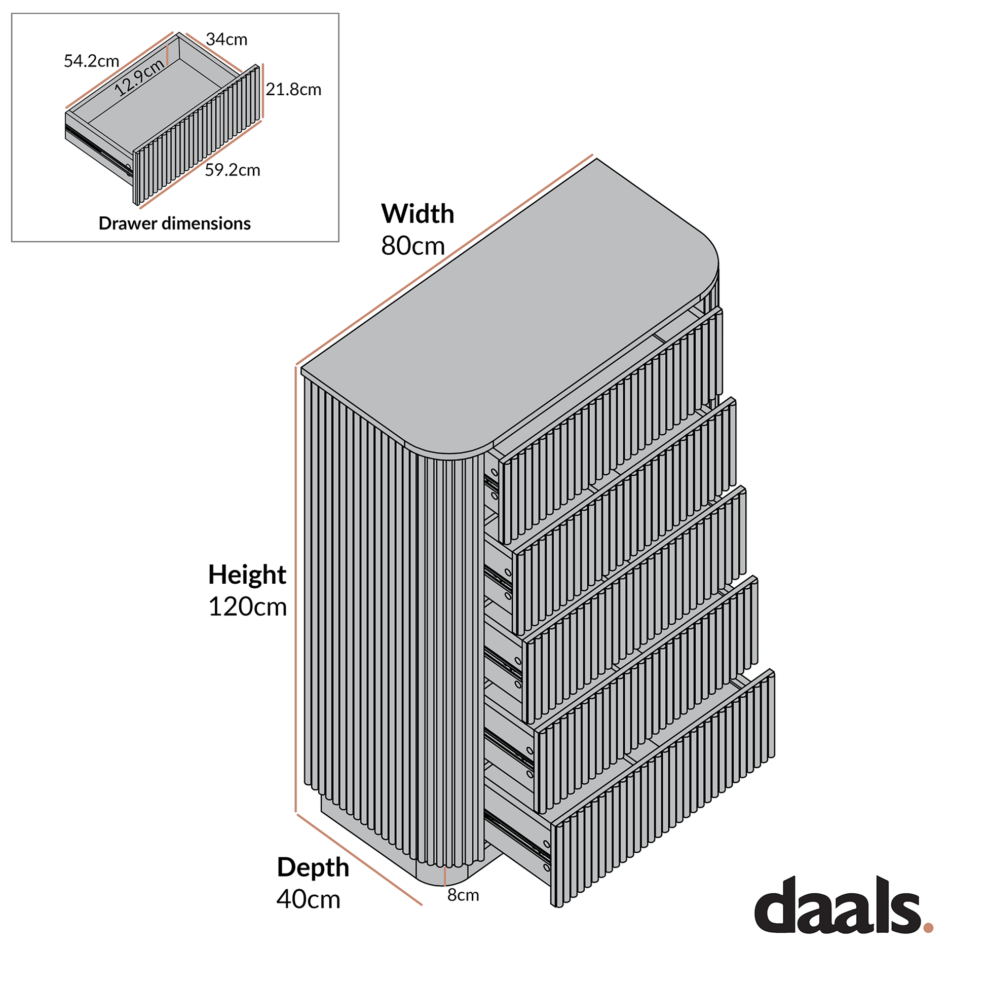 - Towering with quiet confidence, the Maru Chest of 5 Drawers in Oak distills the essence of the Maru collection into a tall, sculptural form, bringing generous vertical storage and refined presence to the bedroom.
