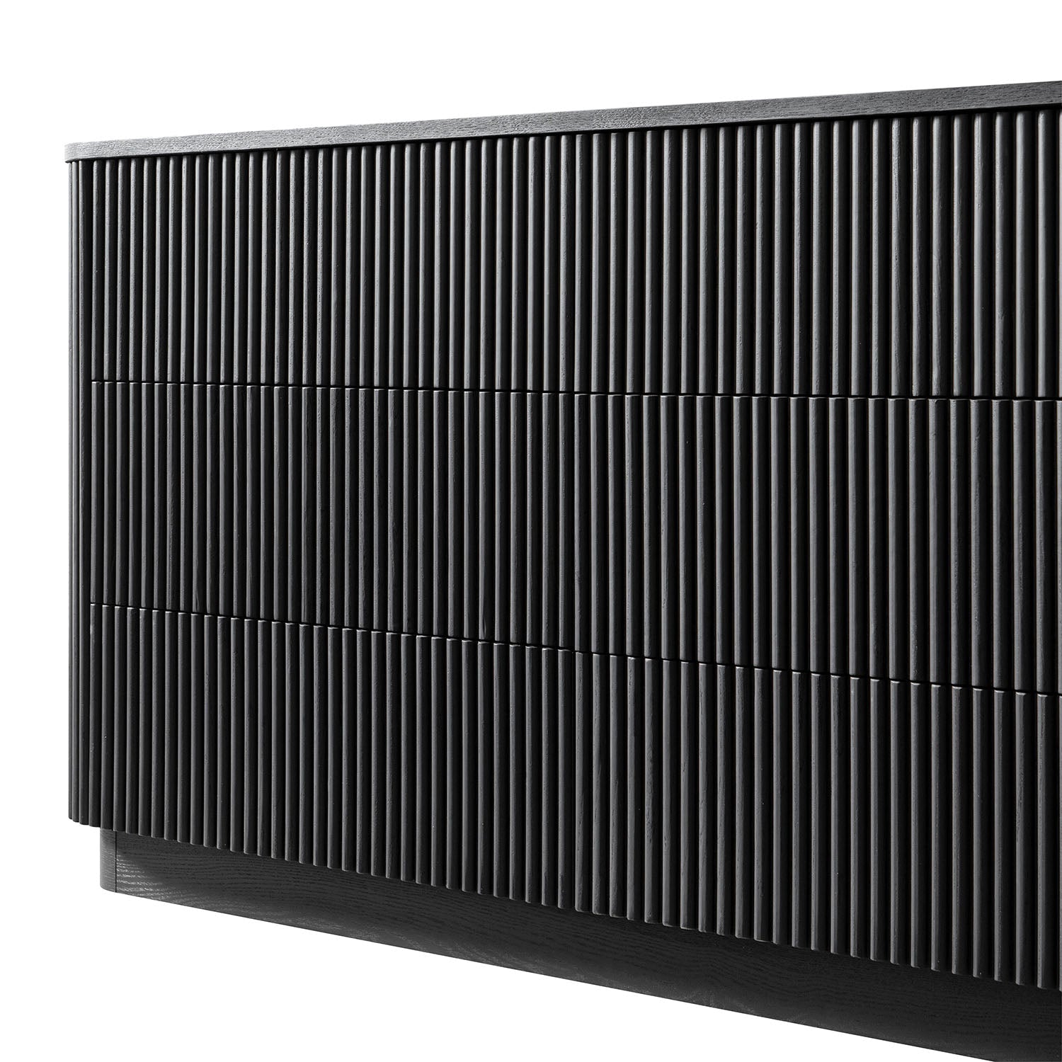 - Its fluted drawer fronts introduce a subtle texture, while the ebony finish brings modern depth and drama.