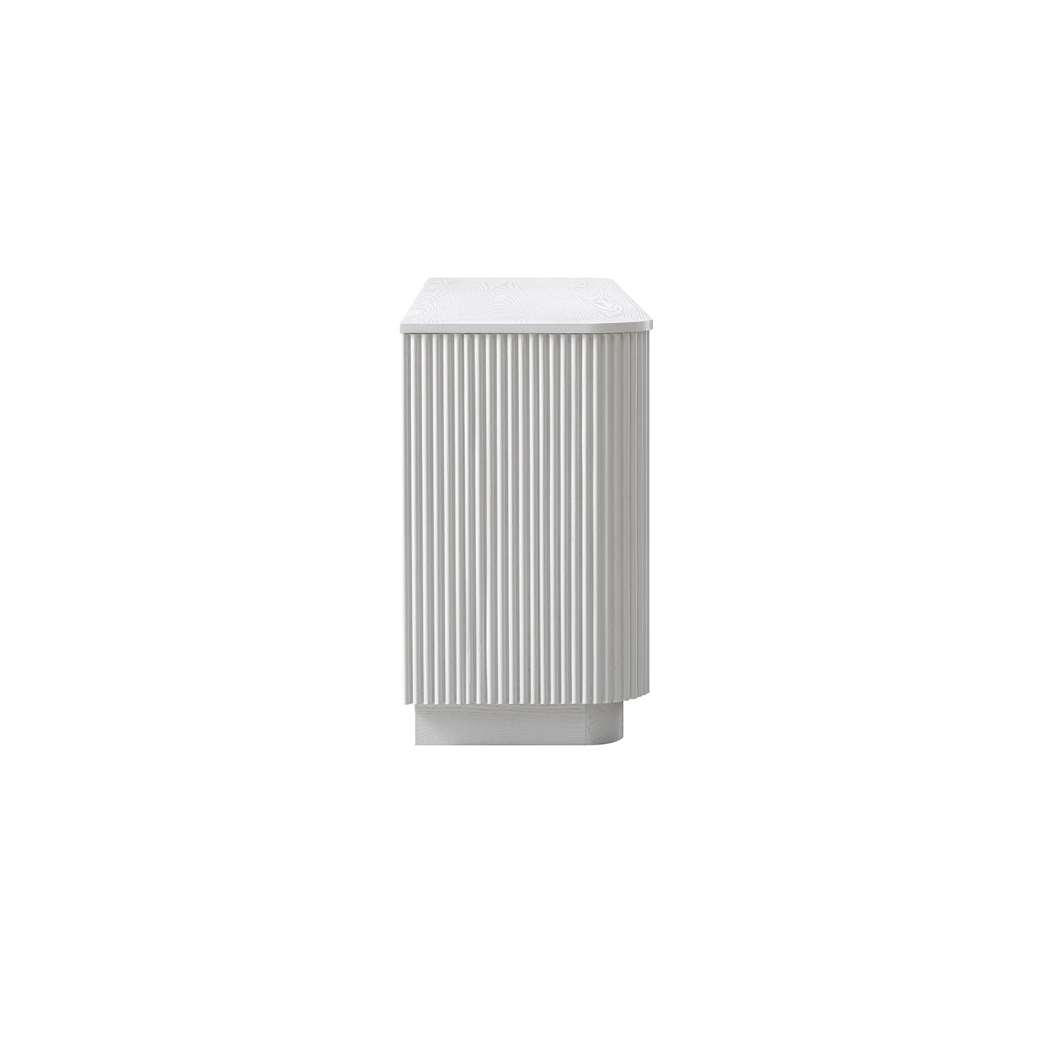 - The signature fluted facade flows seamlessly across four handle-less doors, framed by gently rounded corners and anchored by a recessed plinth base.