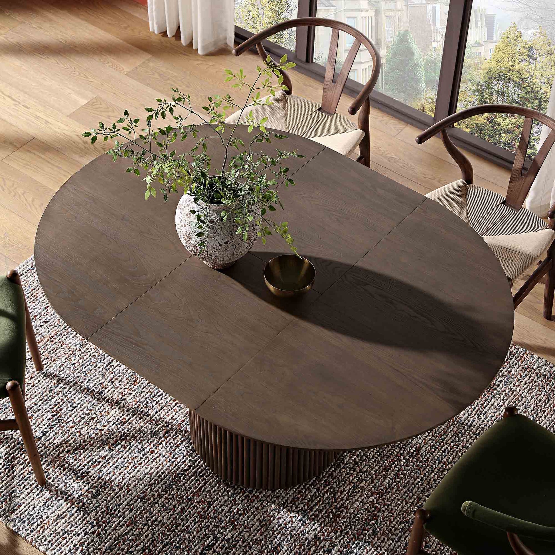 - Our Maru dining table boasts contemporary Japandi style with fluted base made from solid oak. Thanks to its expandable design the table can accommodate up to 6 people.