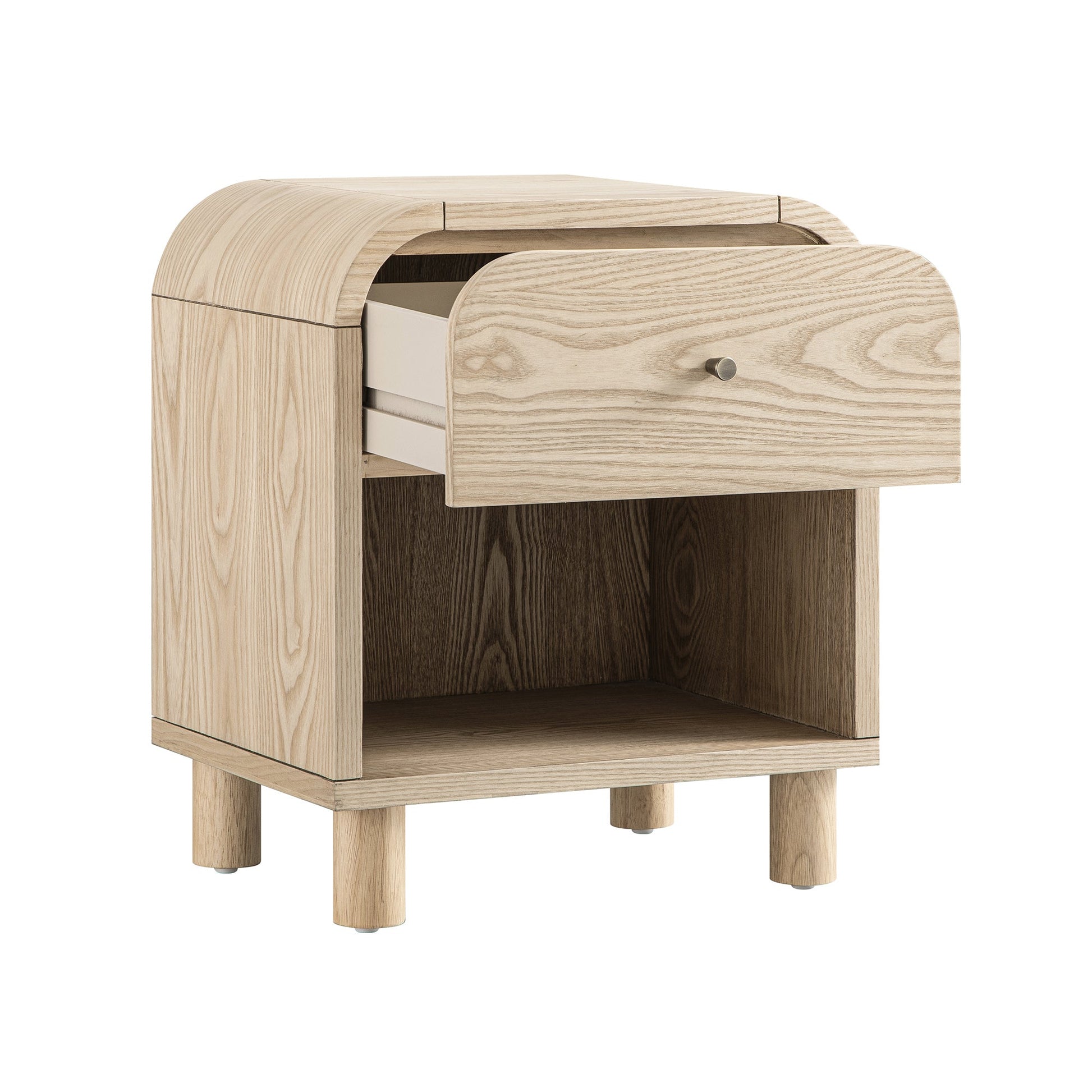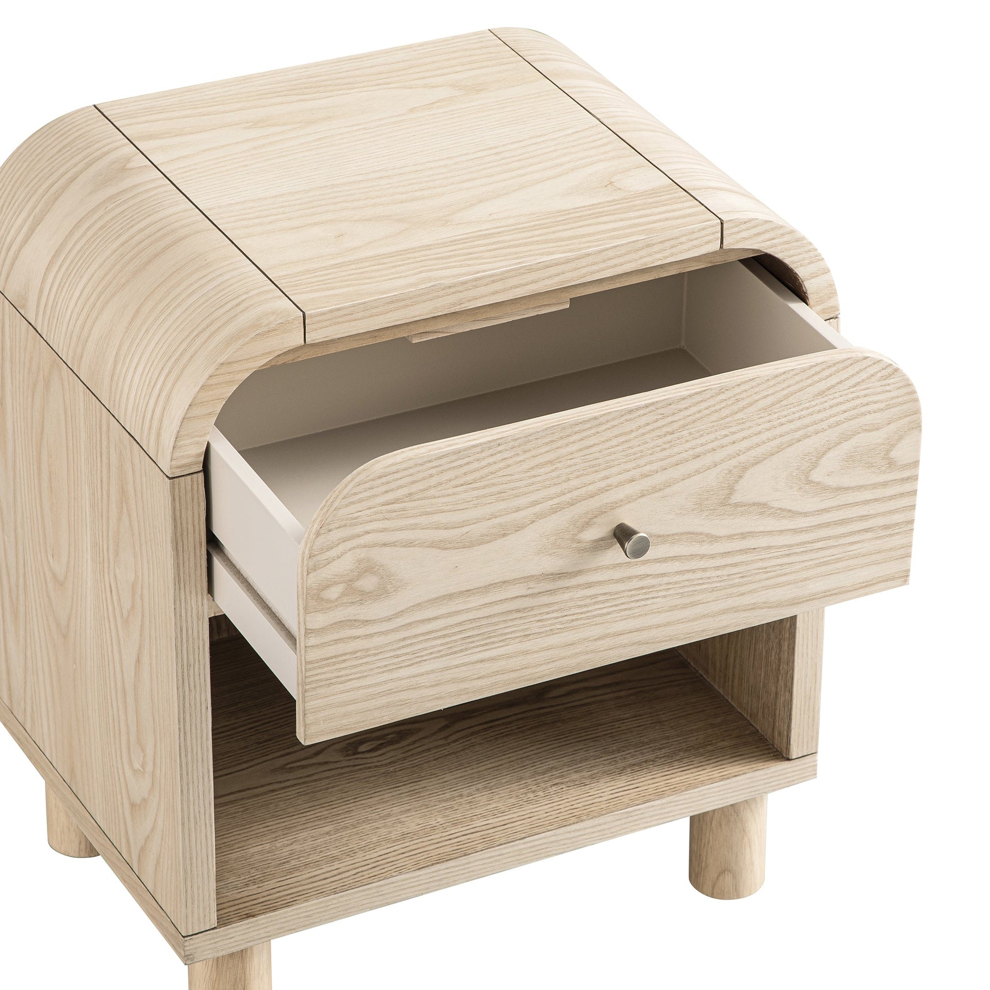 - Softly sculpted and refreshing, our Maude 1-drawer bedside table in natural ash offers a quiet kind of charm.