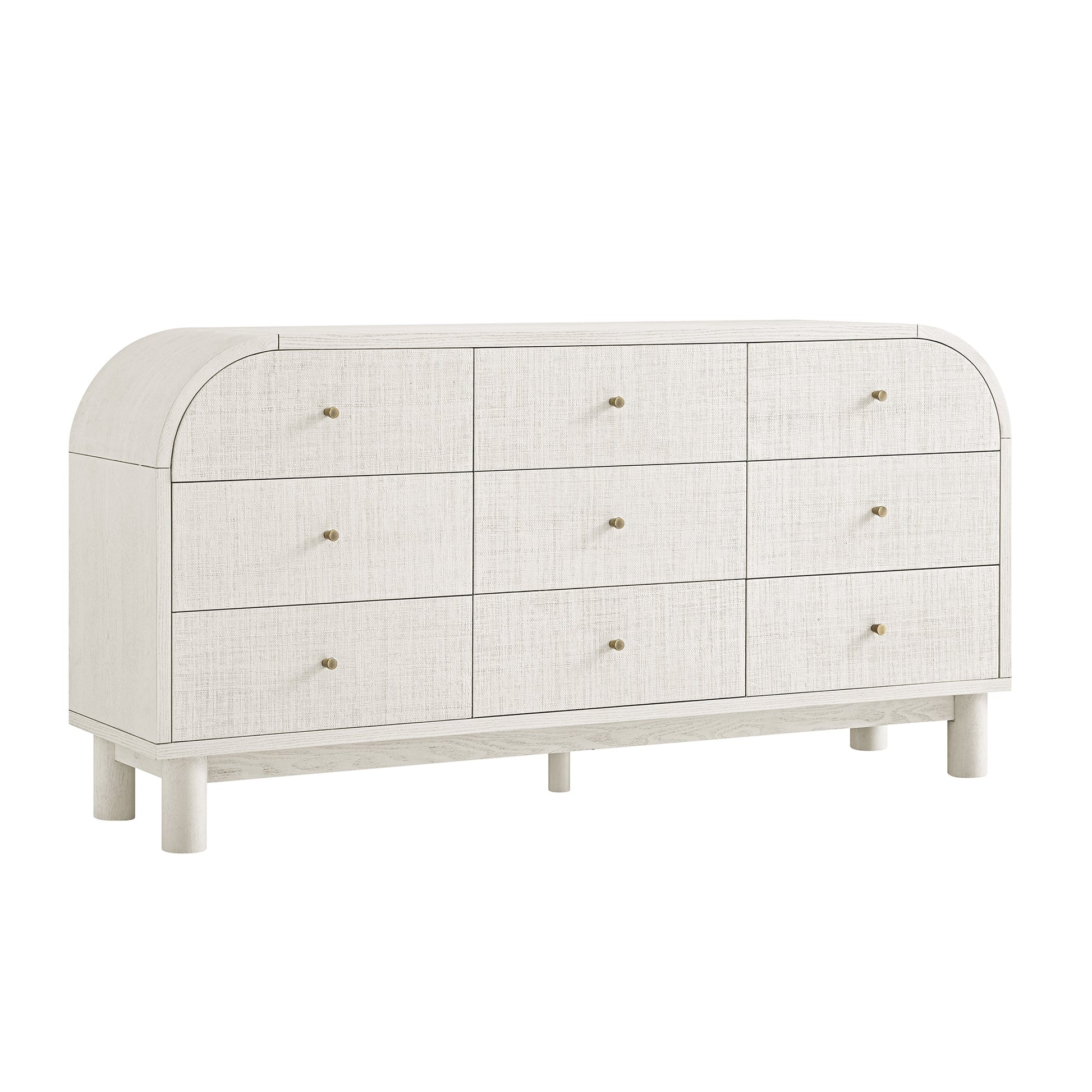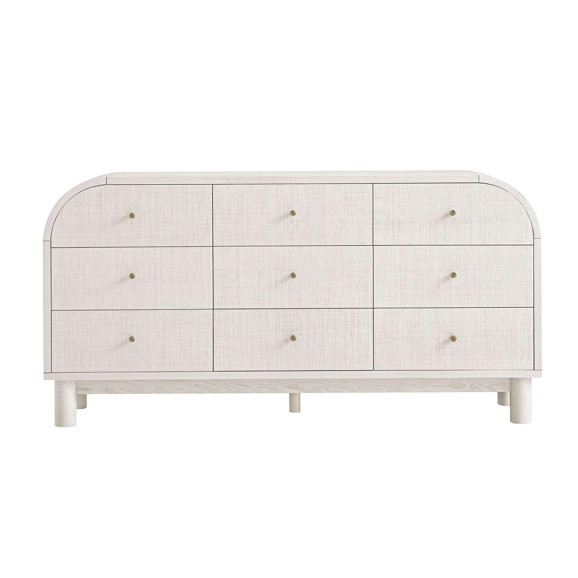 Maude 9 Drawer Chest, Washed White Ash with Raffia