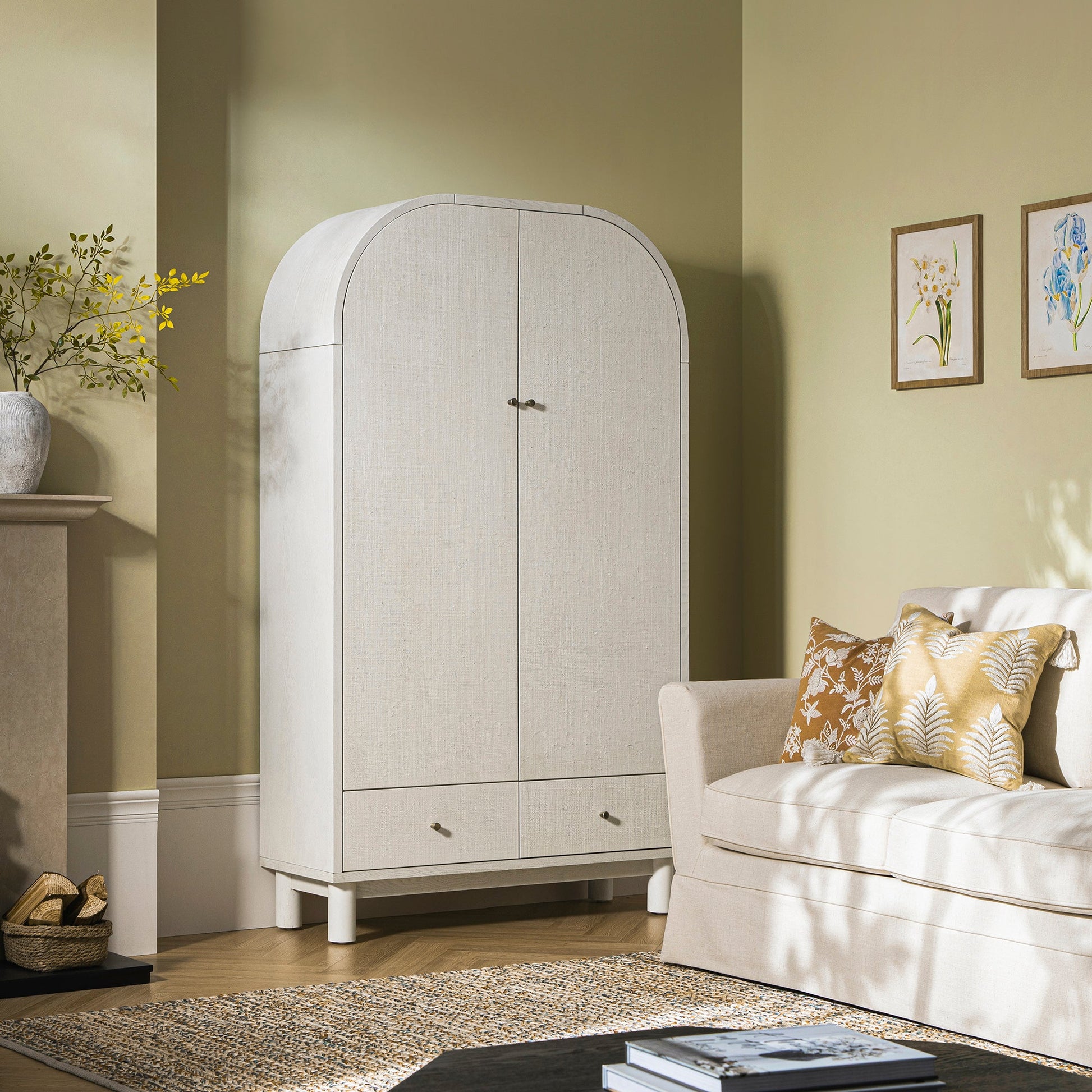 - Complete the look: Pictured with our Maude Large Storage Cabinet are our Fitz Skirted 2-Seater Sofa, our Aurora Hand Braided Bronze & Teal Jute Rug, Vine Collection Green Palms Hand Embroidered Cushion and our Aubrey Collection Floral Cushion