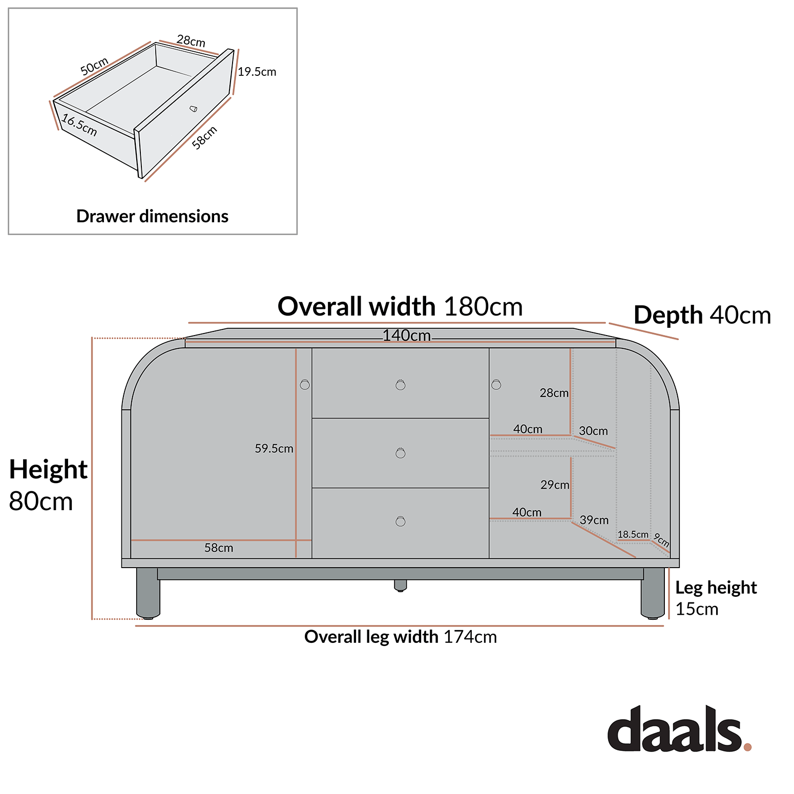 - Side cupboard shelf size: W 40 x D 30/39 x H 28 cm