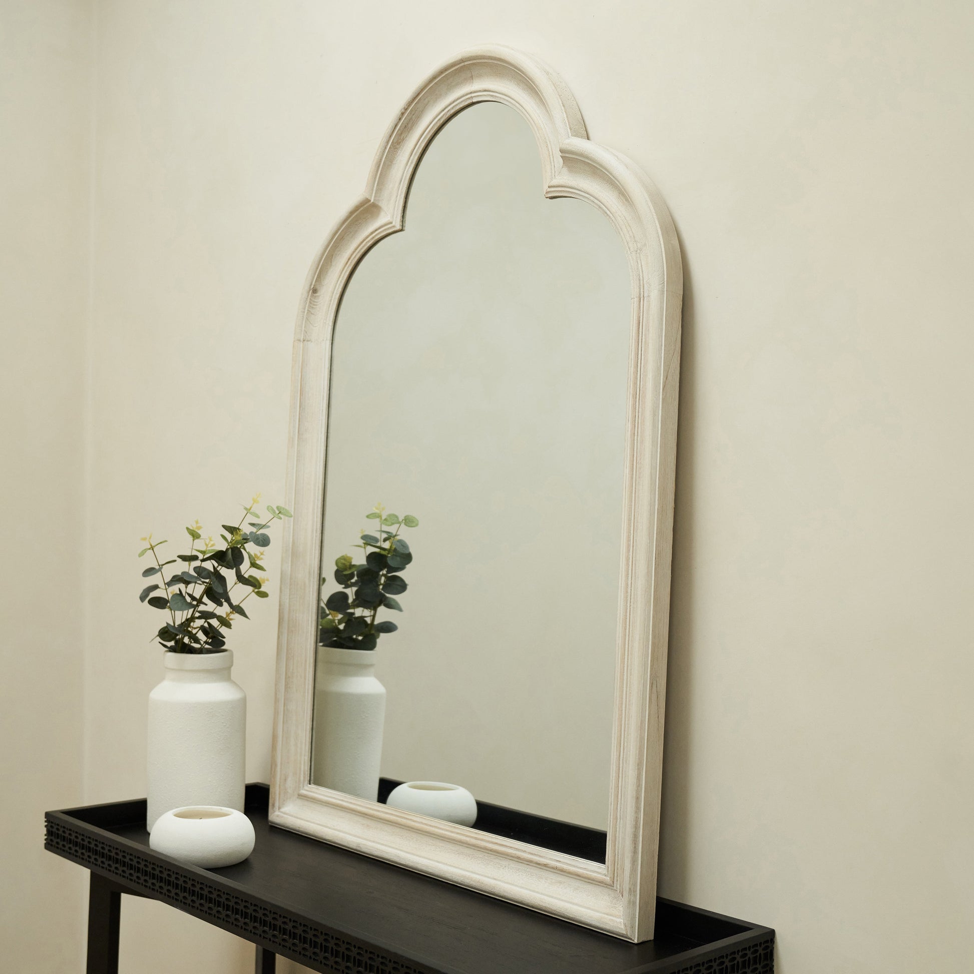 Melilla - White Washed Wood Arched Mirror 120cm x 80cm
