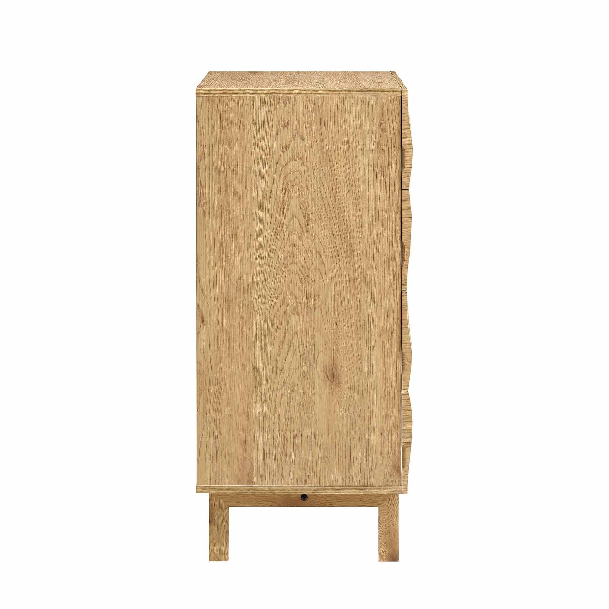 - The unique sculptural facade features flowing waves on drawers' fronts.