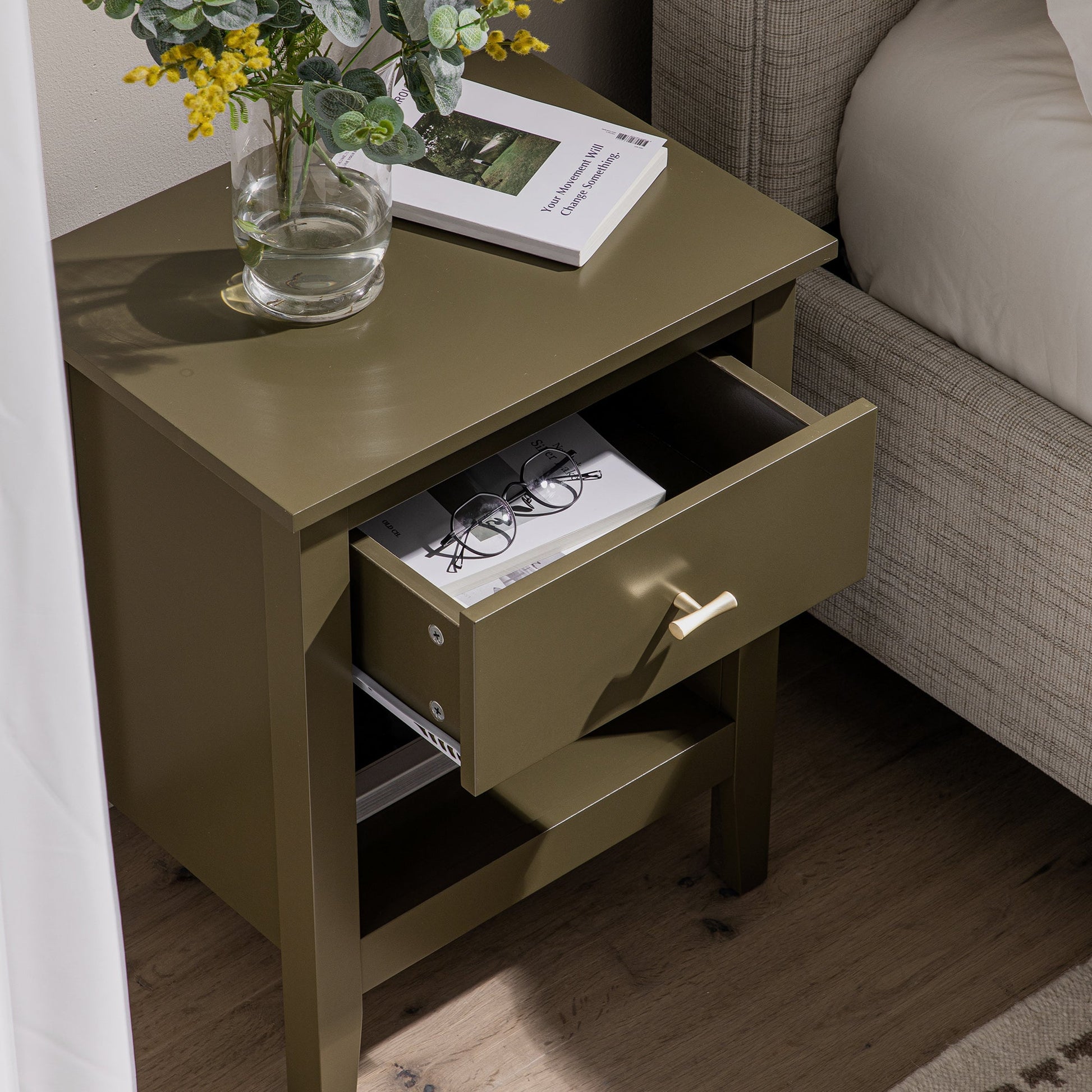 Oakham 1-Drawer Bedside Table, Olive Grove