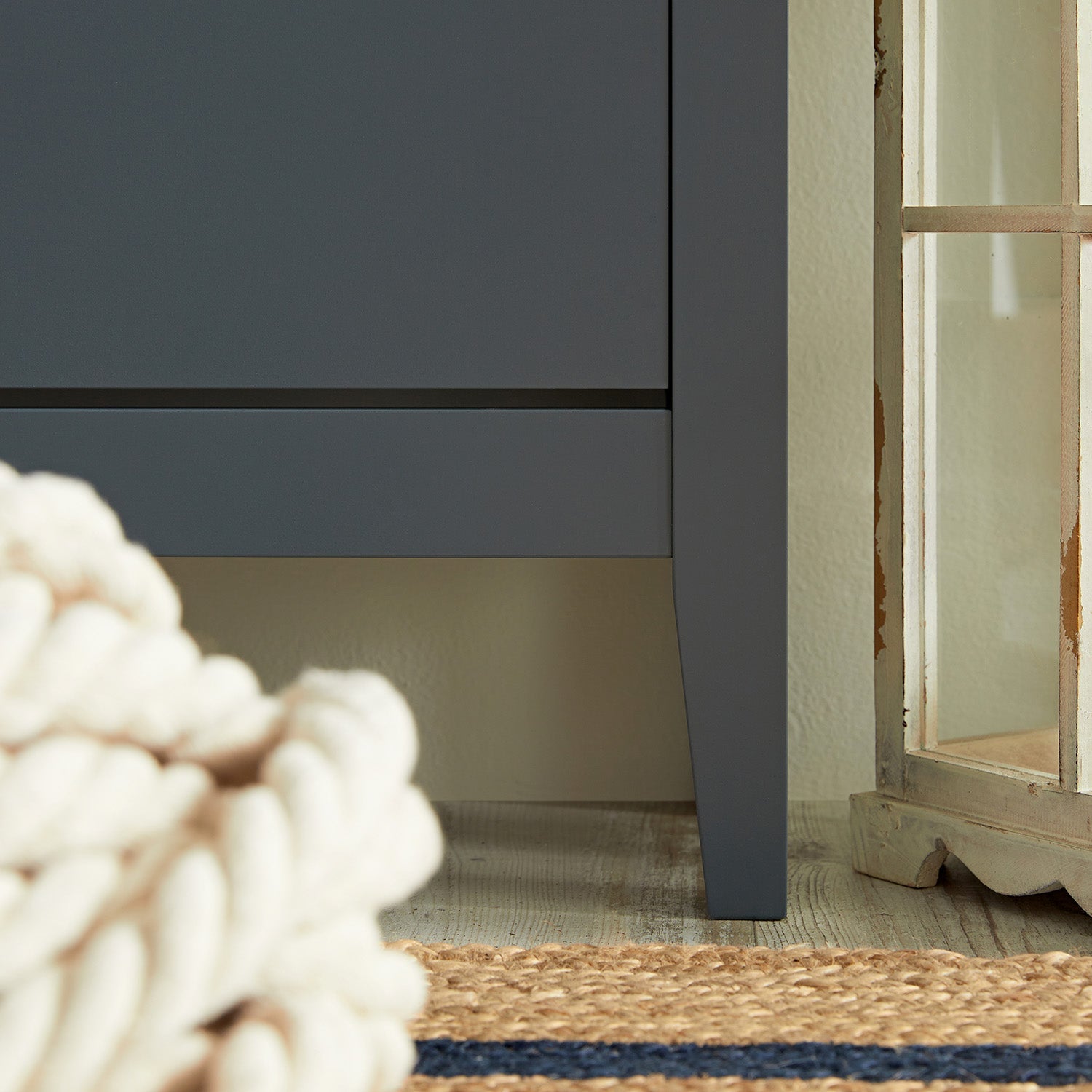 - Painted in a deep, cool-toned blue with subtle grey undertones, this piece brings a calming, modern edge to your space, perfect for pairing with crisp neutrals or layered textures.