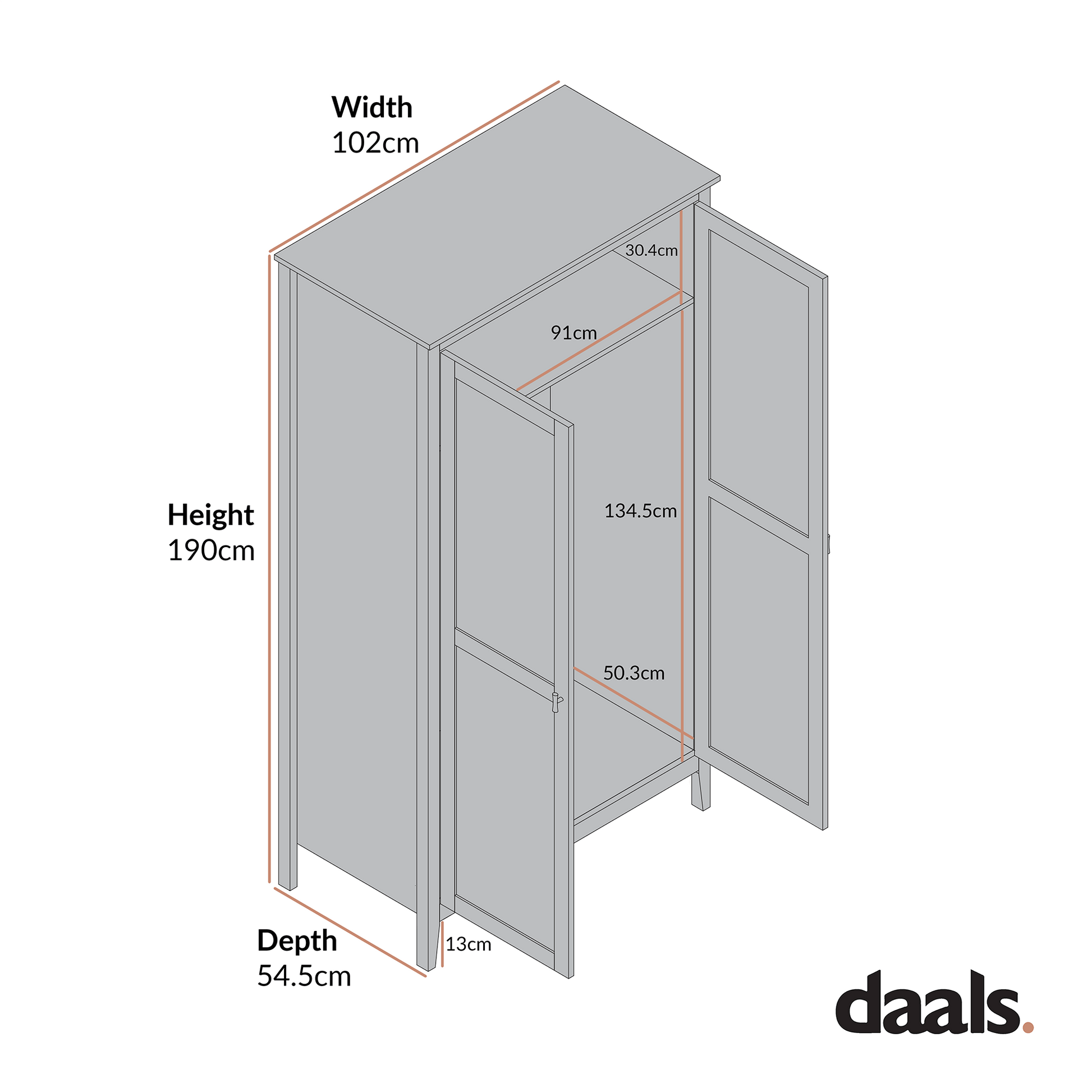 - Inside, a full-width hanging rail and top shelf keep everything from coats to linen tucked away neatly.