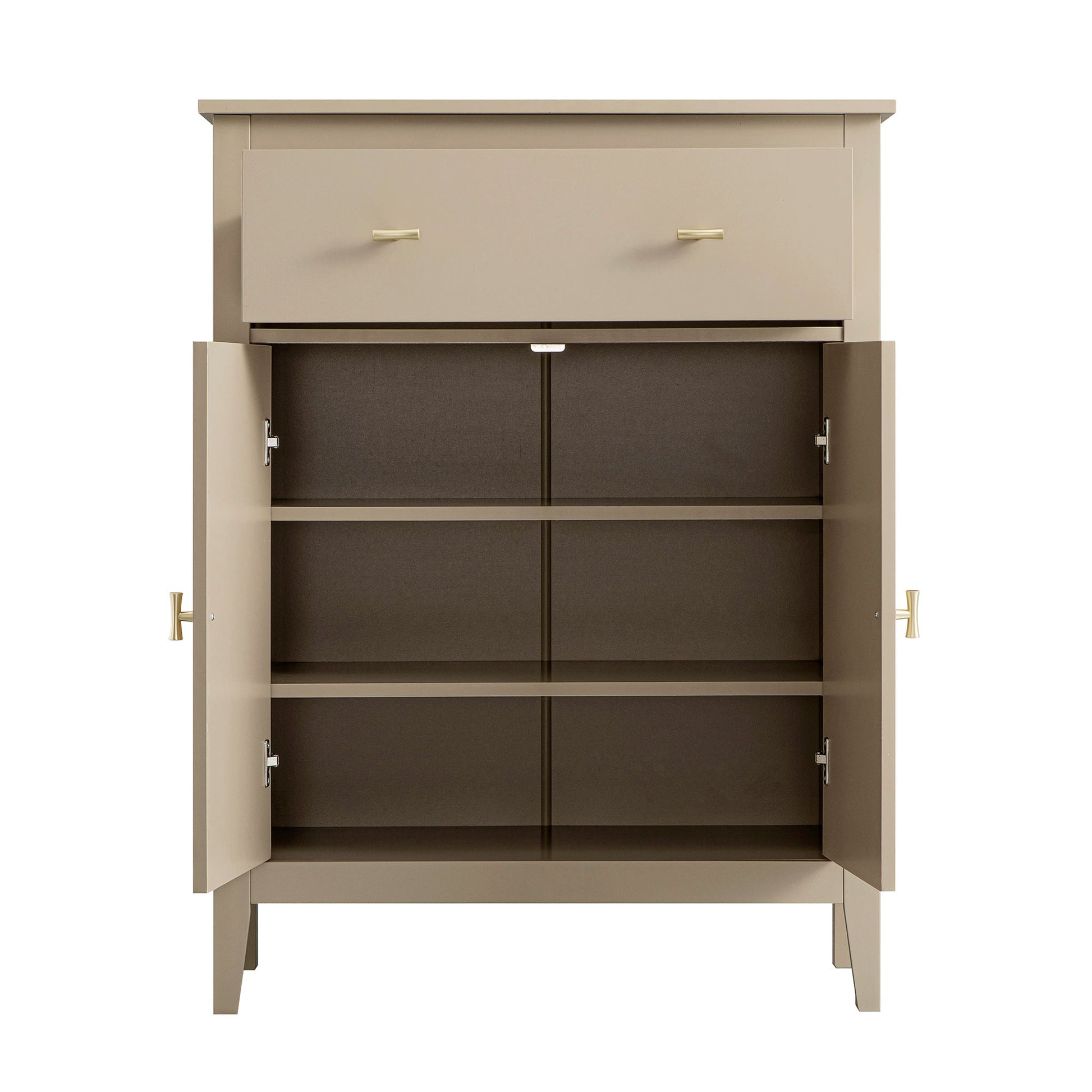 - Designed with both elegance and practicality in mind, it features a top drawer for everyday essentials, while the double-door cupboard below opens to adjustable shelving, ready to house everything from tableware to home office supplies.