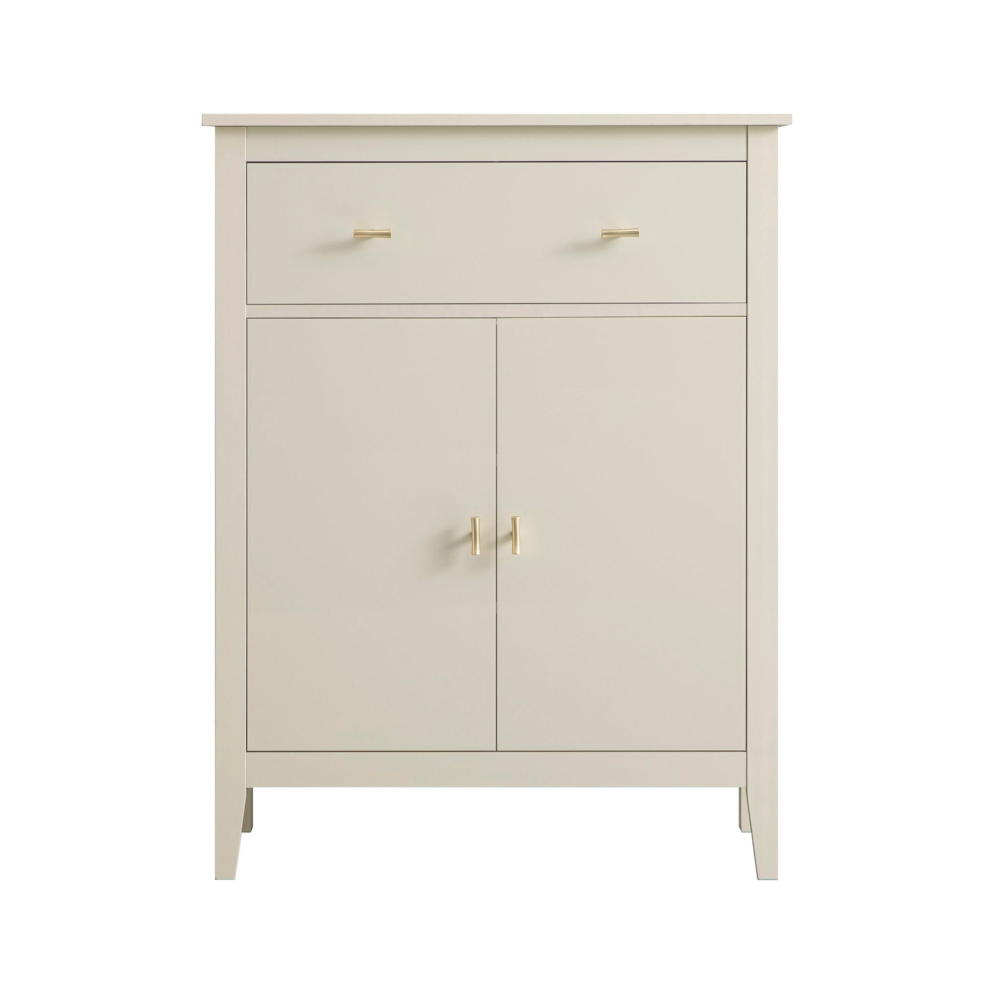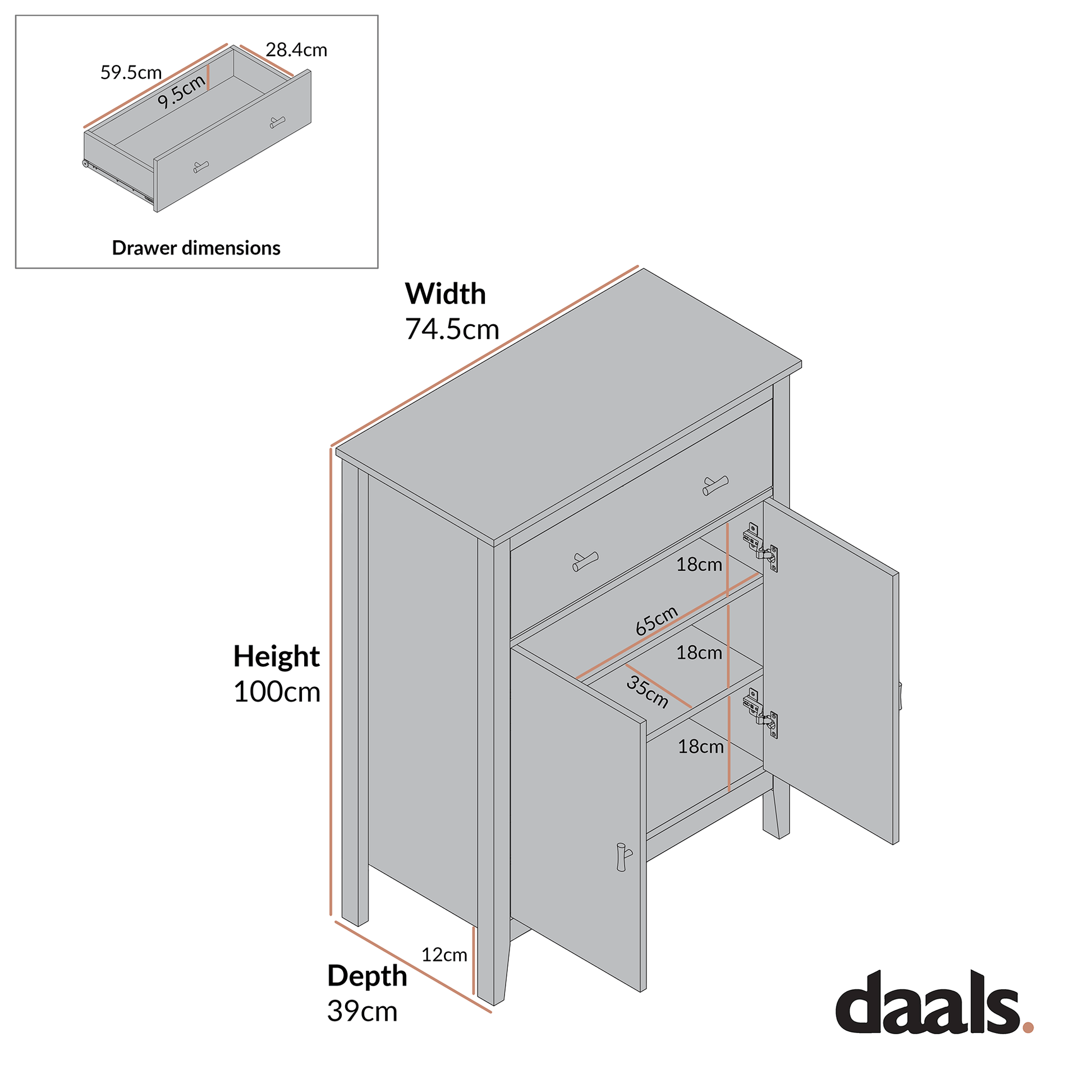 - The design pairs a top drawer that is ideal for linens, cutlery, or those bits and bobs that deserve a place of their own, with a two-door cupboard below, complete with adjustable shelving to adapt to your storage needs.