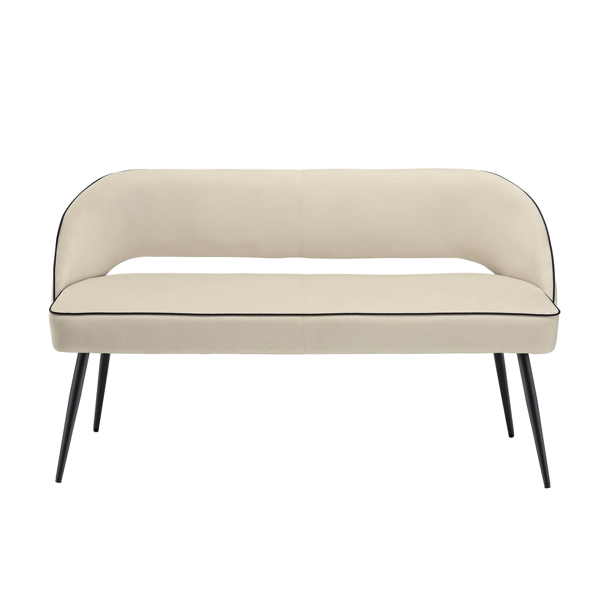 Oakley Champagne Velvet Upholstered 3 Seater Dining Bench with Contrast Piping