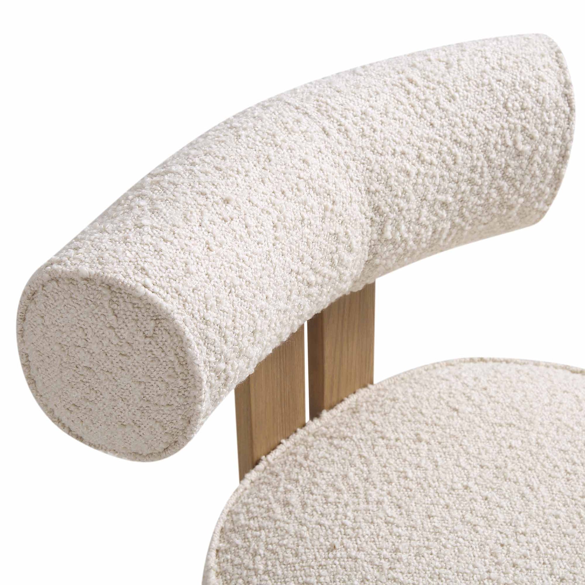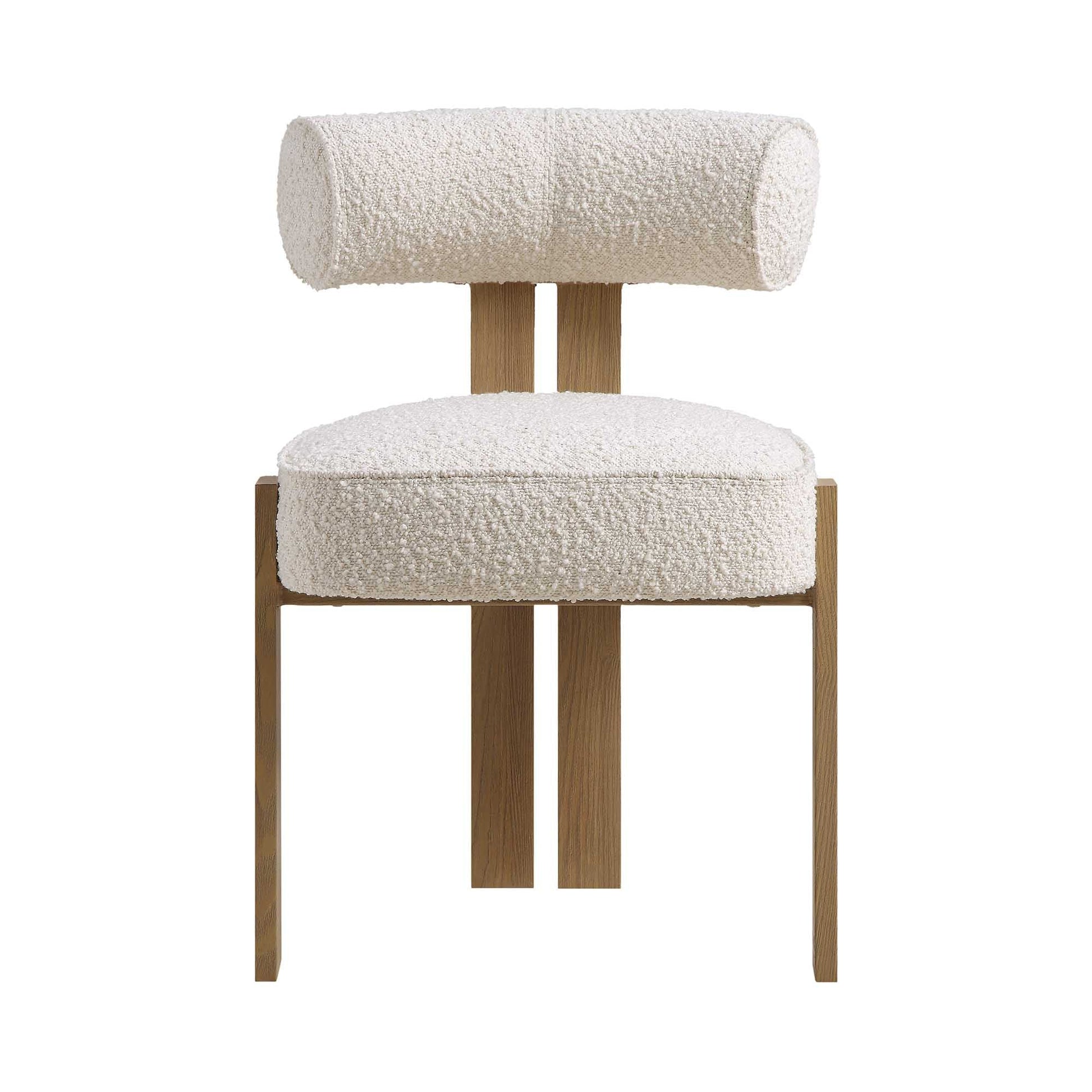 Combining chic ecru boucle upholstery and natural wood effect frame, our Ophelia dining chair fits seamlessly in your room to create an inviting dining space.