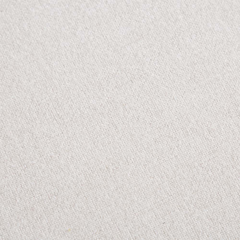 - Upholstered in soft beige woven fabric to complement the natural solid oak frame material, the back and seat cushions are decorated with piping details for a sophisticated look.