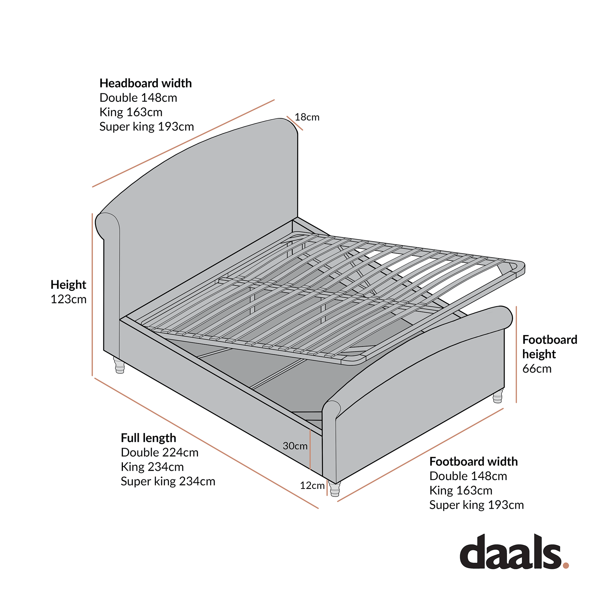 - 6FT Super King: W 193.0 x D 234.0 x H 123.0 cm