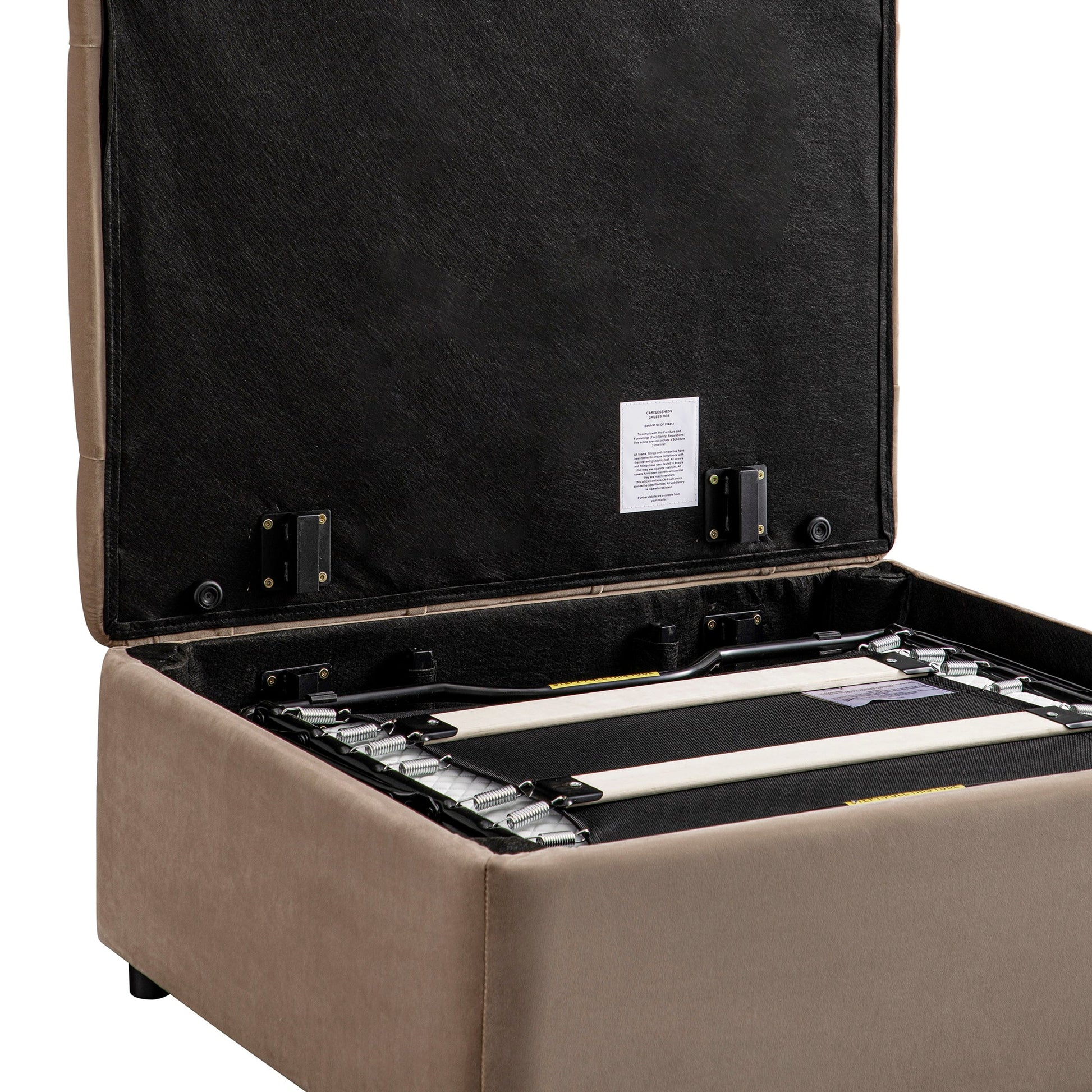 Portland Single Buttoned Fold-Out Bed in Ottoman, Mink Velvet