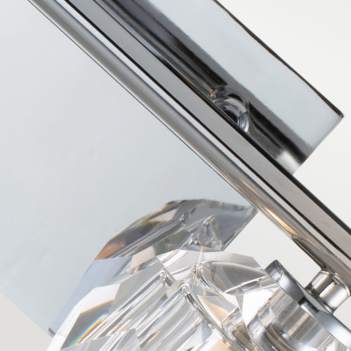 The Regalia makes a chic style statement with prismatic crystal shades that amplify the light brilliantly. An understated crossbar and rectangular backplate are finished in a sophisticated polished chrome to finish the look. Regalia is also IP44 rated, so great for use in Bathrooms.