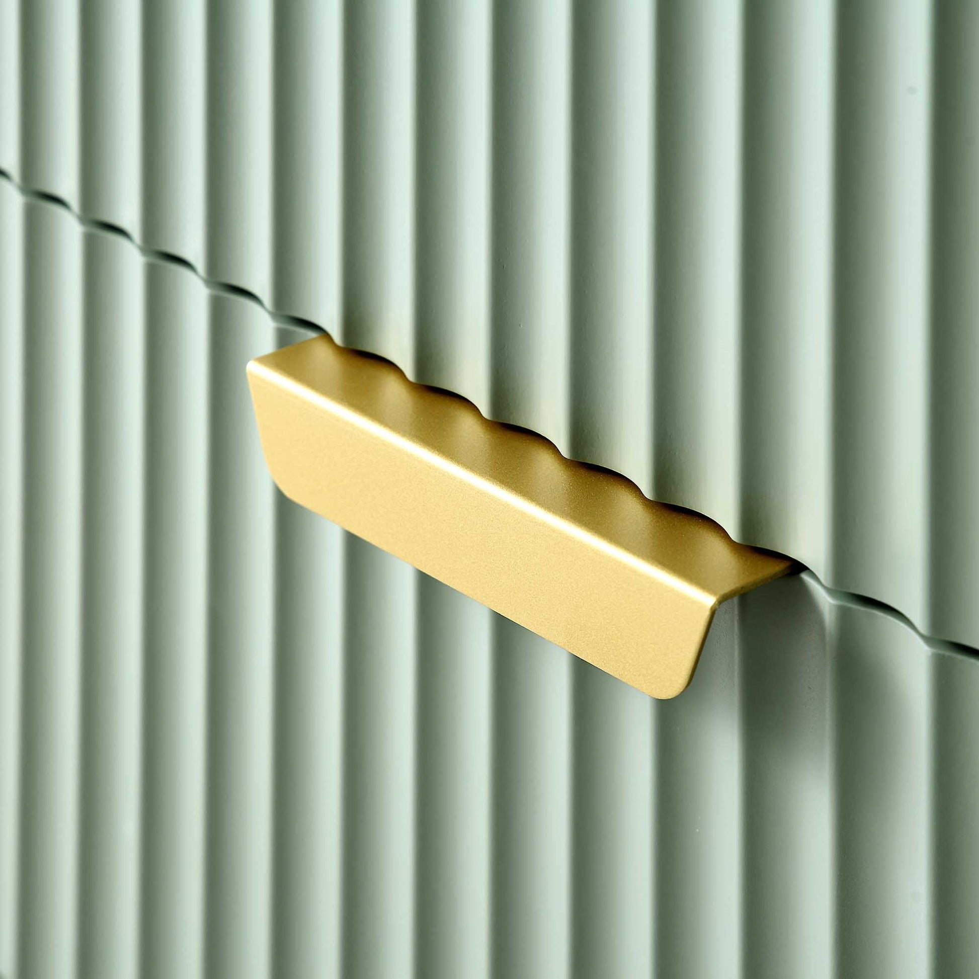 - Ridged door surface finished in matte sage green paint, paired with gold handles and legs give a striking stylish look.