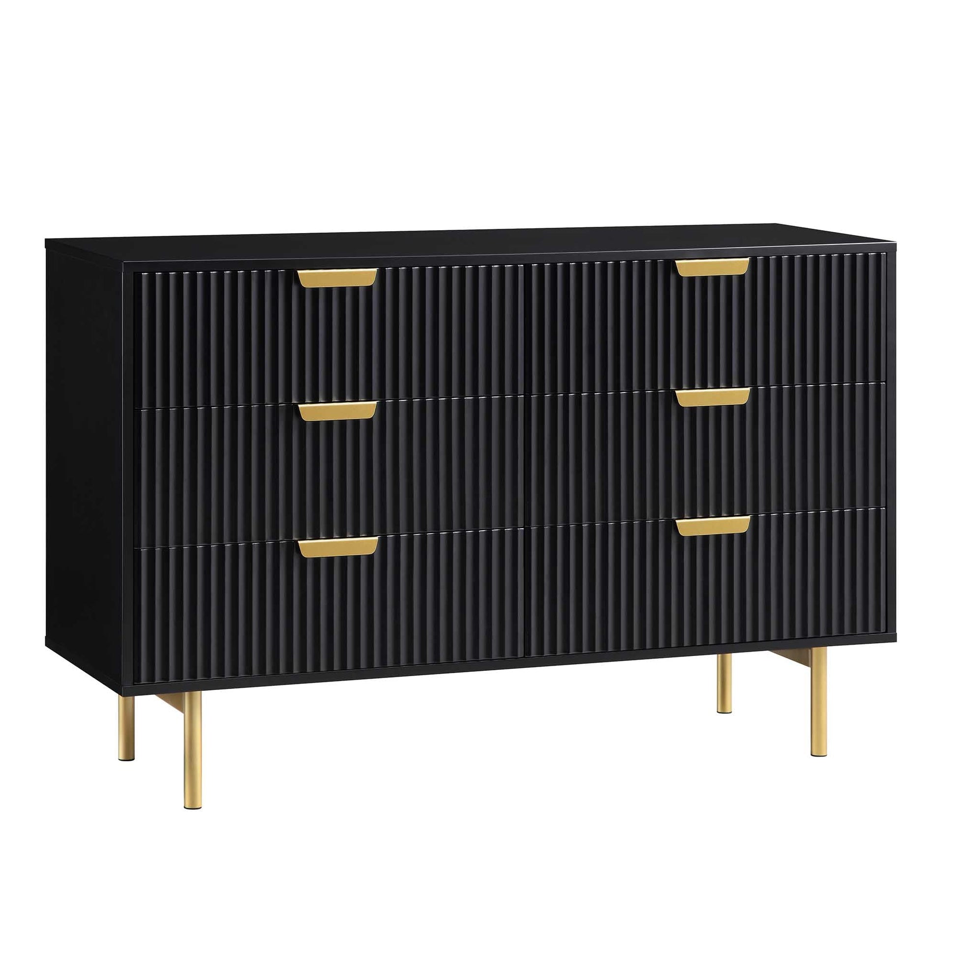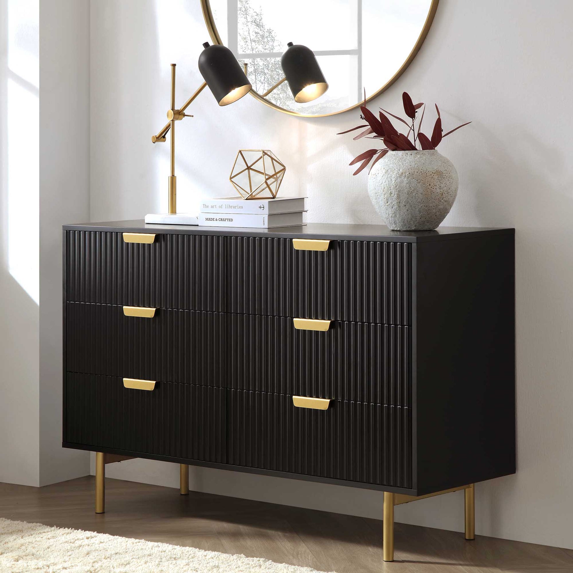Richmond Ridged Wide Chest of 6 Drawers, Matte Black