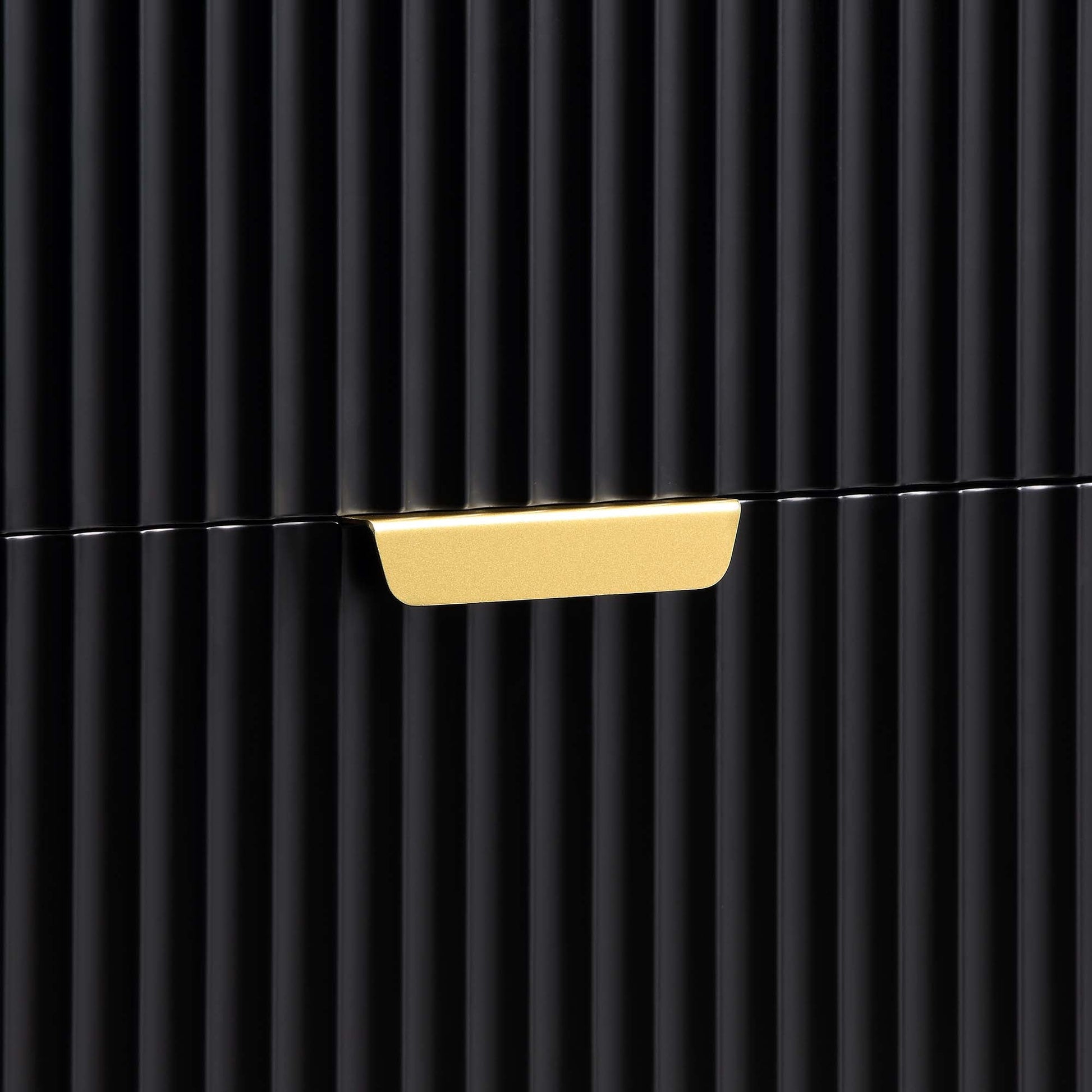 - Ridged door surface finished in matte black paint, paired with gold handles and legs give a striking stylish look.