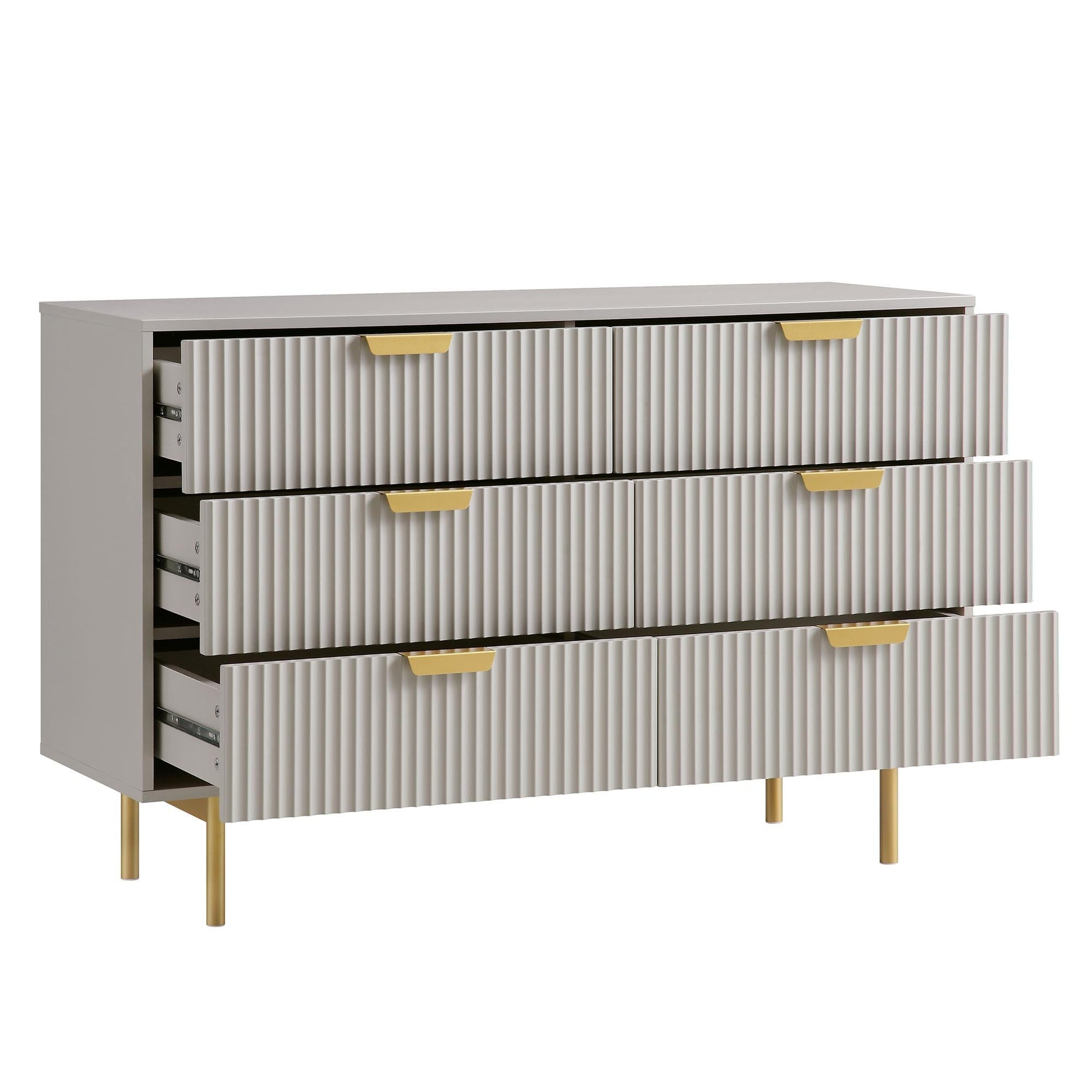 Richmond Ridged Wide Chest of 6 Drawers, Matte Taupe